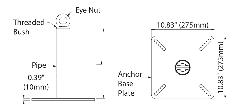 12" or 18″ End Post option for Fixed Systems with Fixed Eye Bolt (ANSI)