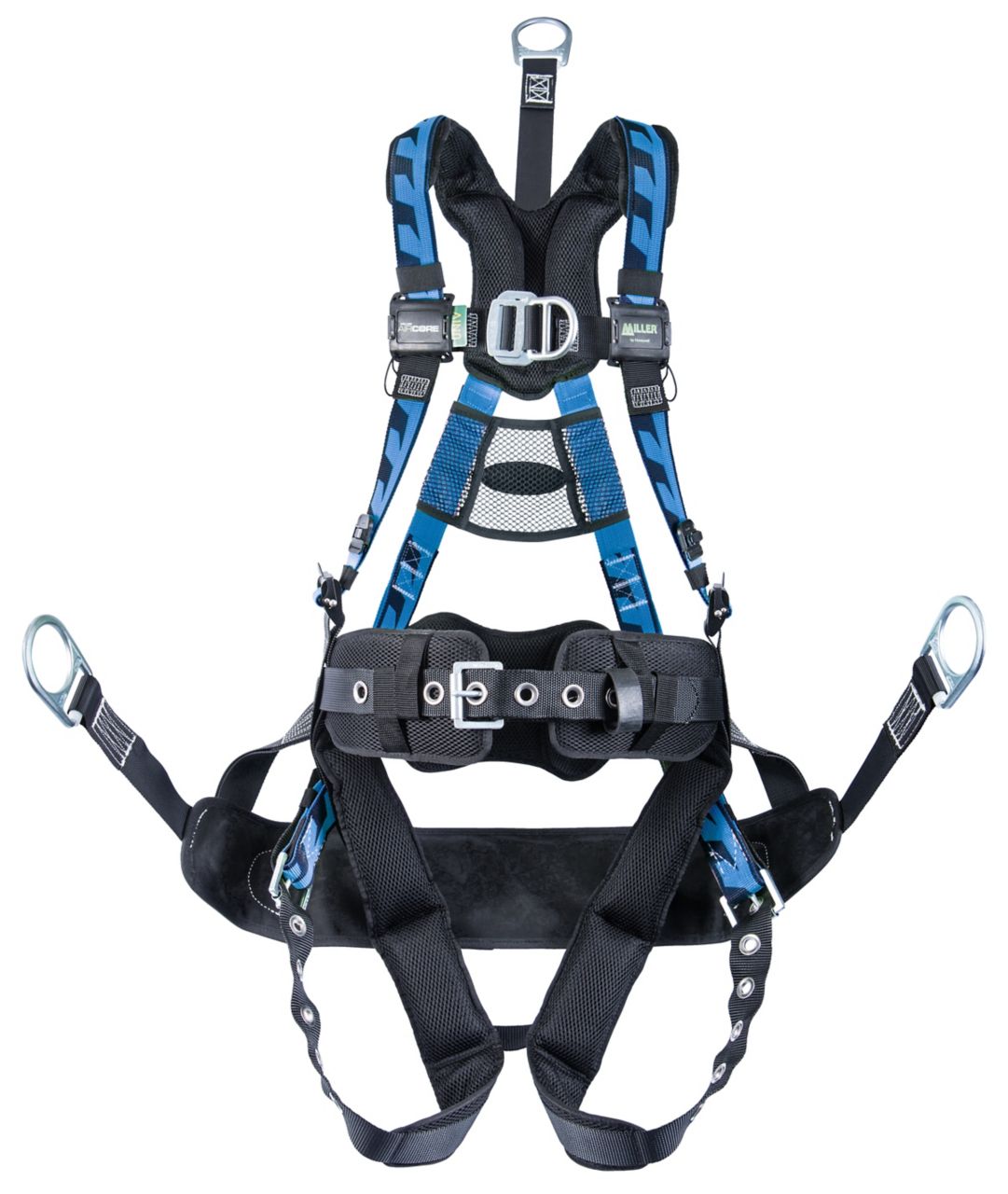 Patent-pending Miller AirCoreTM Harnesses feature world-class, breathable padding and specially-formulated elastomer webbing that stretches to maximize comfort, improve safety and increase productivity.