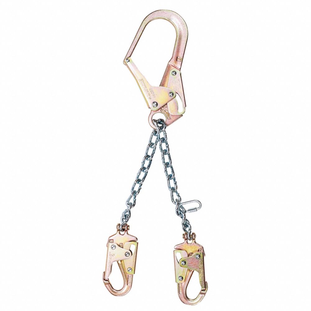 Lanyards for rebar positioning work have a large rebar hook for attaching them to rebar, scaffolding, railing, or anchor points in front of the worker. This allows the worker to rest in the harness & prop his or her legs on the anchor point, lean back into the harness, and hold tools with both hands. These lanyards are "Y" shaped. They have two snap-hook connections that attach to a safety harness's side D-rings.
