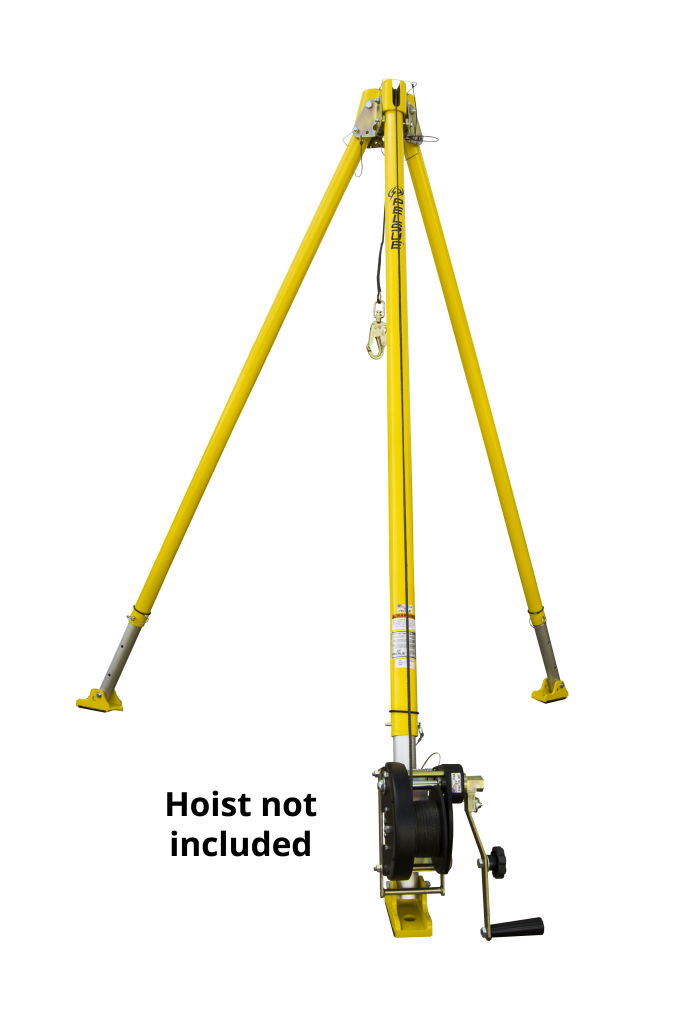 The Pelsue Rescue Tripod is designed for rescue applications. The telescoping aluminum legs allows for height adjustments in 5 in increments. The legs can be adjusted to any angle to meet demanding rescue applications. The Rescue Tripod is rated to support a single user, up to 310 lb, including tools, belts, etc. The user can be supported using the built-in pulley, or one of the 3 anchor points, which have been proof rated to 5000 lb in accordance with OSHA standards.