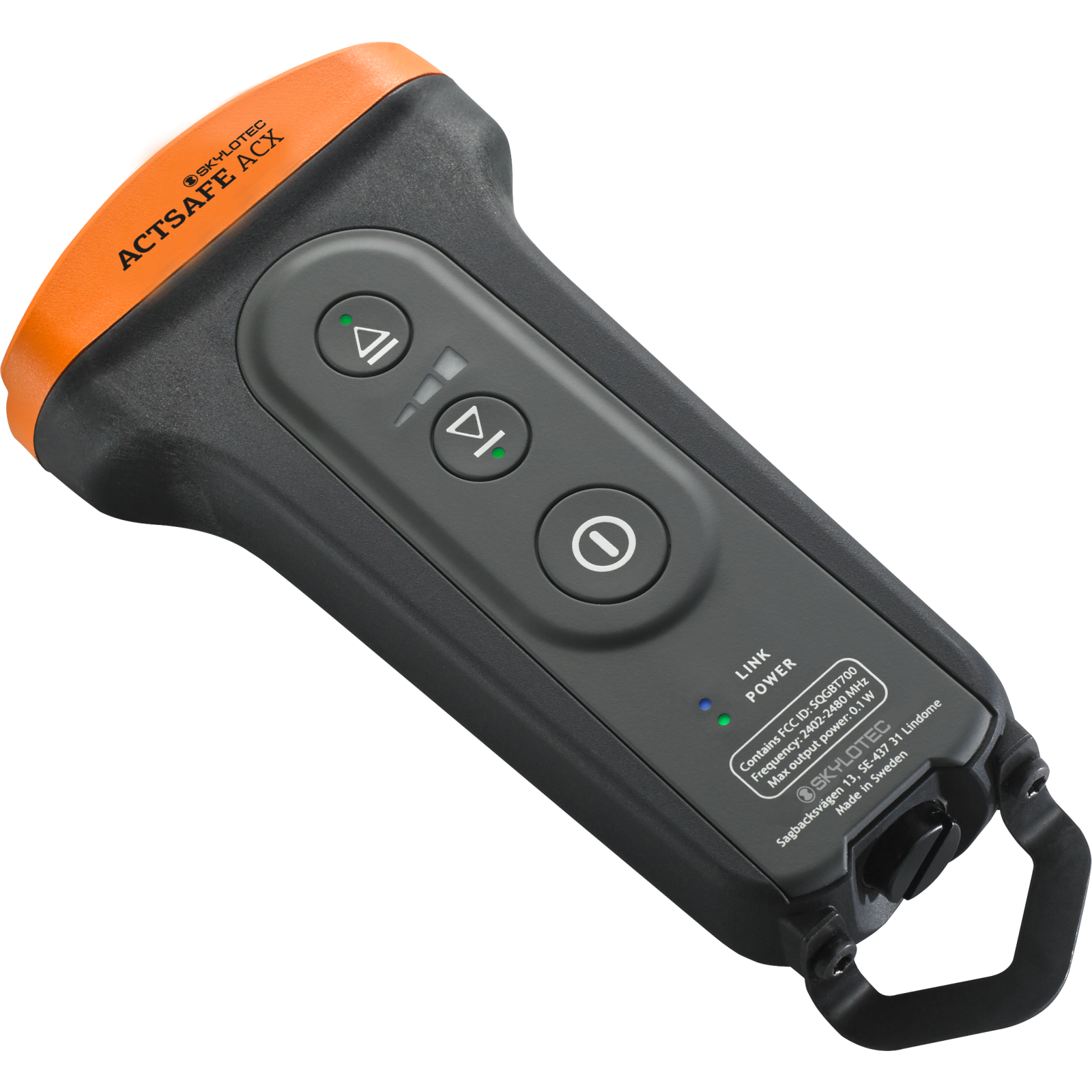 This replacement accessory of the ActSafe ACX POWER ASCENDER increases the safety of every user considerably. With the ActSafe ACX REMOTE CONTROL, a second person working on the ground can take over the control of the passenger winches up to a range of 150 meters. This enables them, for example, to abseil a disabled and unconscious person in an emergency without an elaborate rescue system. The person working on the rope can override the control at any time.