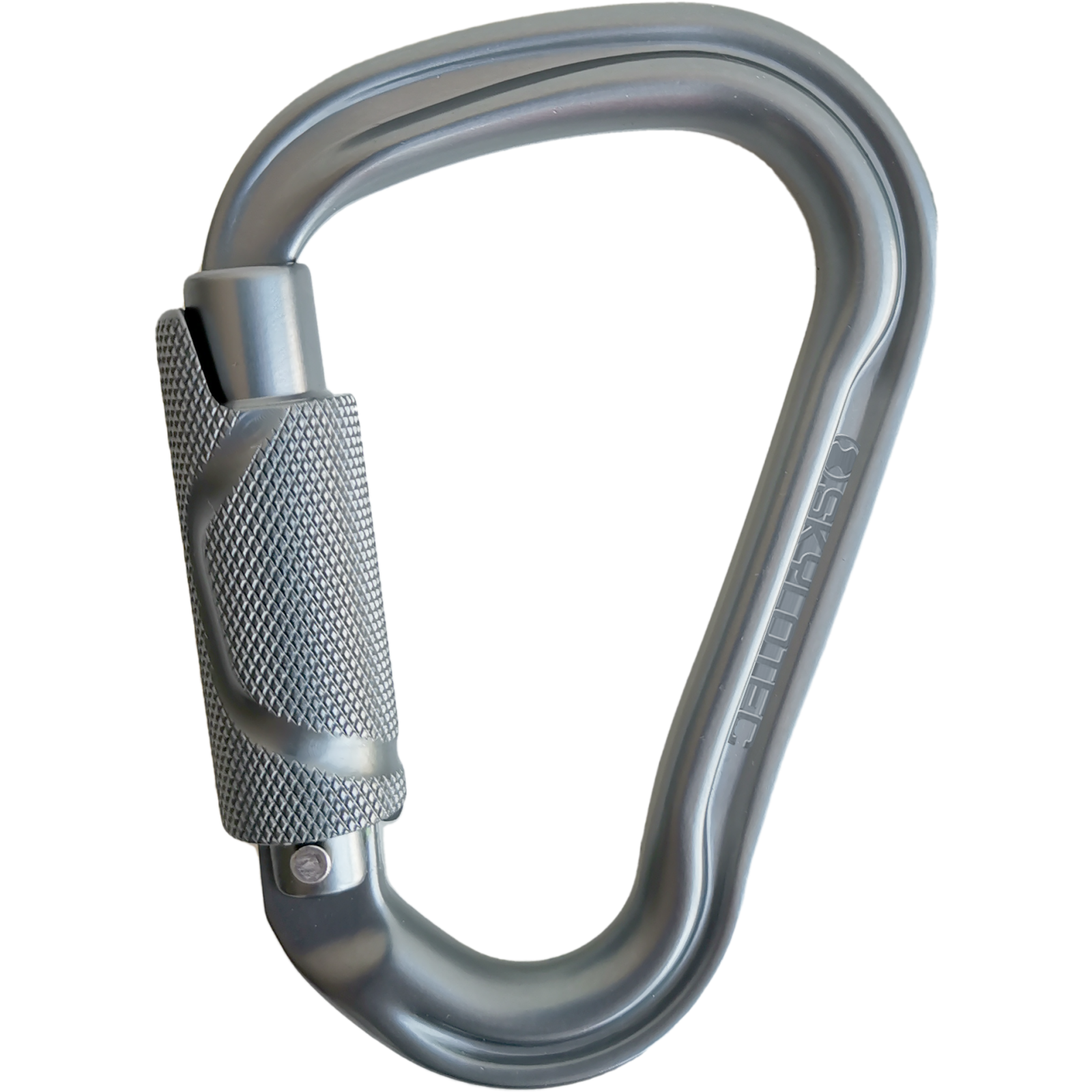 HMS carabiner with DOUBLE TRIPLE gate. With the DOUBLE Gate with patented 180 deg technology, the locking sleeve can be turned in two directions. So the carabiner is equally easy to use for left and right-handers.