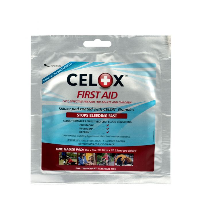 CELOX is an over-the-counter blood clotting agent that delivers fast first aid care for all types of bleeding--from cuts, scrapes, and nosebleeds to moderate and severe bleeding. CELOX is so effective, it's been proven to work even in the presence of common anticoagulant blood thinning medications--a welcome breakthrough for the 40 million Americans who are on blood thinners and who can suffer from serious bleeding issues. Proven to Be Effective Originally developed to assist military medics, CELOX provides fast, effective first aid for men, women, children and older adults, and it's easy to use even if you have no first aid or medical training. CELOX has even been proven to work in the cold (in cases of hypothermia). A small, specially shaped CELOX-bonded pad that can be easily and comfortably inserted in the nostril to quickly stop nosebleeds.