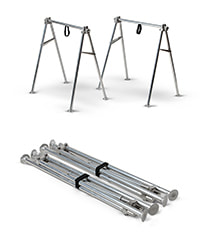Compact, lightweight aluminum litter support stands are ideal for use by field medical units to support any standard field litter at a convenient height for treatment. May be used on level or non-level surfaces as support stands automatically adjust to any terrain. Easy folding for compact storage. Designed to support any standard field litter.
