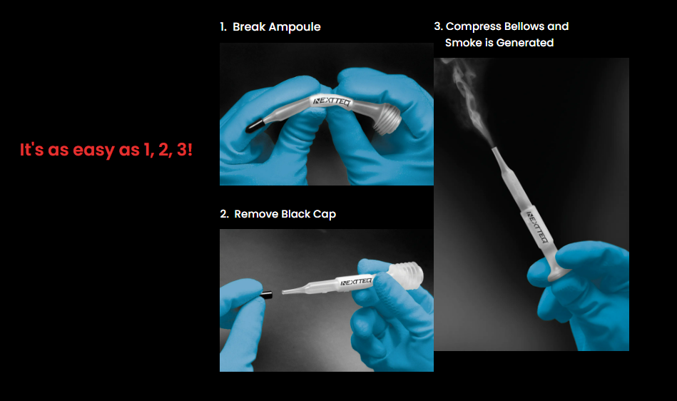 - Irritant smoke (involuntary cough reflex); only for testing respirators with level 100 particulate filters