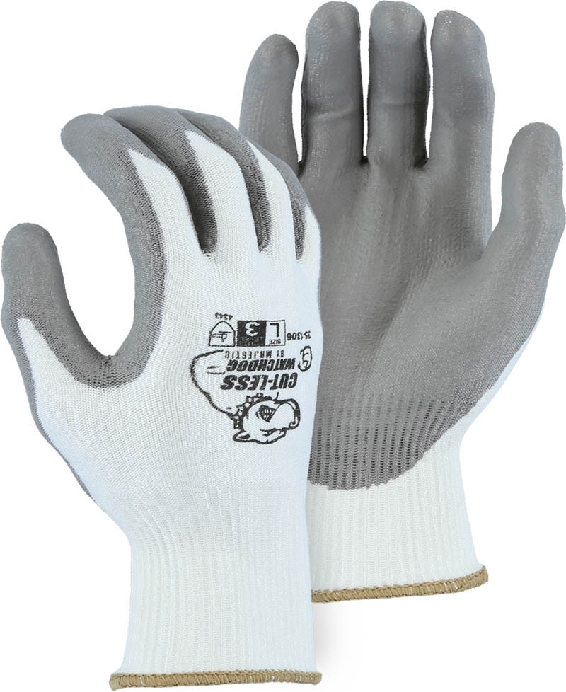 Majestic cut-less watchdog gloves with KorPlex cut resistant technology. The technology uses an engineered yarn that blends some of the strongest fibers to produce ultimate cut resistance. Its properties offer tactility and flexibility while maintaining exceptional cut resistance and extreme comfort.