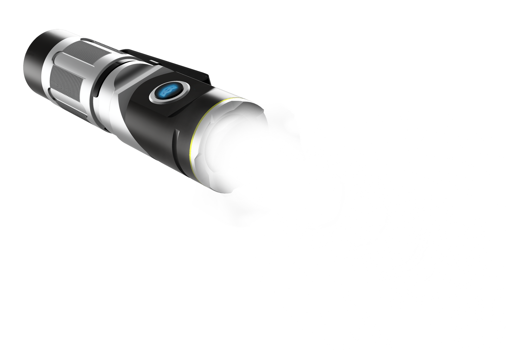 Swivel head flashlight which mounts on side rail, slot clip or on front with headlamp clip (all sold separately). 1050 Lumens, 5 light modes (low, med, high, burst, strobe), magnetic on side, USB-C Rechargeable, 100 grams. Made of aluminum and light splash resistant. Run time of 8 hrs at 100 lumens, 5 hrs at 500 lumens, 1.5 hrs at 1000 lumens.