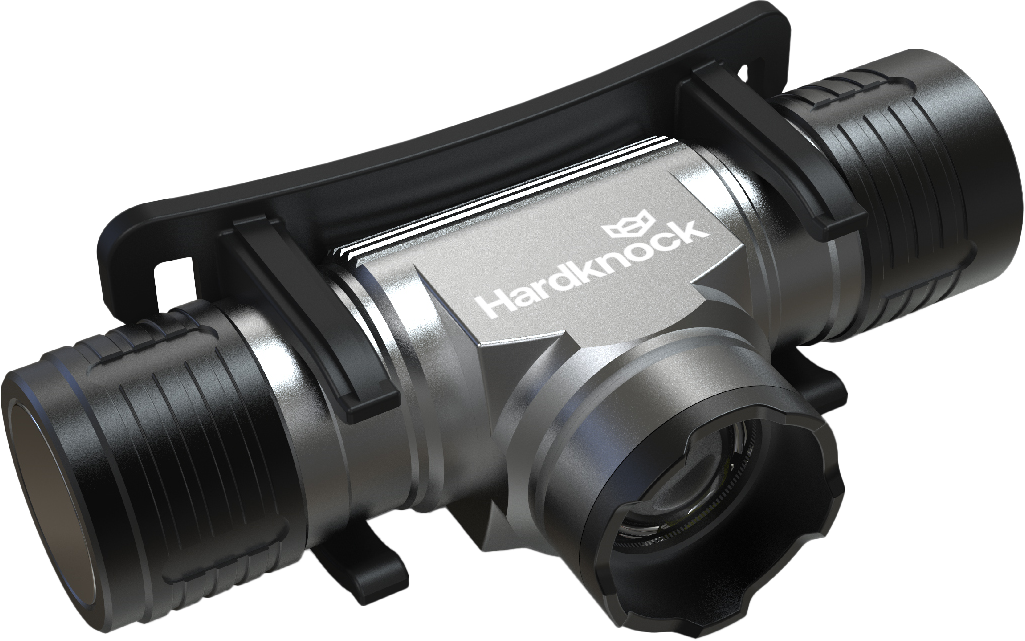Designed to work with Resolve helmets and help shed light on any project, the Hardknock Headlamp is super tough and crazy bright. With a handy magnetic base, it can pull double duty, going from helmet to metal surface and back again. Make hard look easy. This swivel headlamp mounts with straps using multifunctional rail clips (sold separately). 1050 Lumens, 3 light modes (low, med, high), magnetic on side, USB-C Rechargeable, 130 grams. Made of aluminum and IPX4 water resistant. Run time of 8 hrs at 100 lumens, 5 hrs at 500 lumens, 1.5 hrs at 1000 lumens.