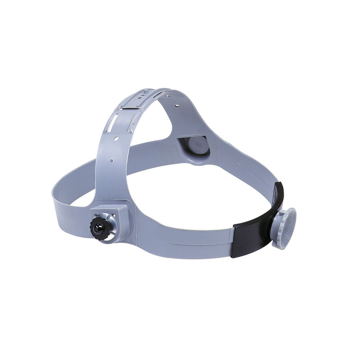 Deeply offset: pliable headband fits head contours comfortably. Overhead band with multiple adjustments helps position the glassholder for the best view of the weld and a comfortable working position. Exclusive "free-floating" arms balance and stabilize the helmet while minimizing pressure points. Strip-proof ratchet head size adjustment provides small increment sizing. Model 3-C performs well in hot or cold: is unaffected by age: does not crack or break. In models where free-floating arms are impractical: unique mounting brackets are used.