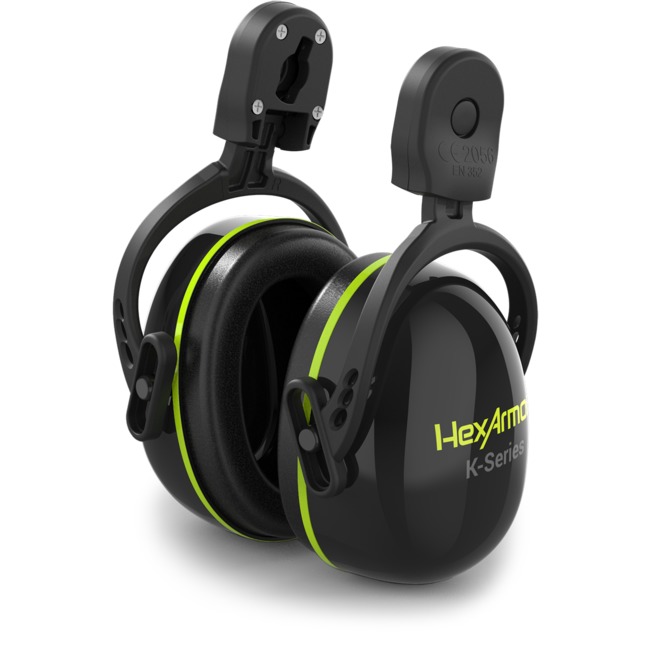 The K2M mechanical earmuffs have a noise reduction rating of 25 dB and are designed to be used with our mechanical face shield.