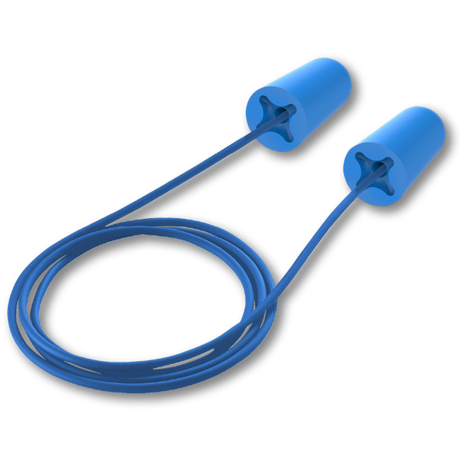 - Detectable earplugs are blue and contain metal components for easy detection in food-related applications