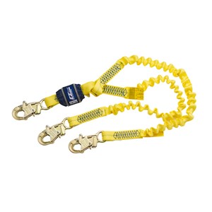 3M DBI/SALA 6 Ft EZ-Stop 100% tie-off shock absorbing stretch lanyard with locking snap hooks at each end. EZ-Stop shock absorbing lanyards are designed for versatility and are available in many variations. They use a controlled tearing action when subjected to fall arrest forces, limiting arresting forces to no more than 900 lbs The new design shock pack is the lightest, strongest and smallest shock absorber in the world. The shock pack has a rugged and durable soft cover. The lanyard labels are protected for durability and longevity. The new 3/4 in HI-10 Vectran Energy Management material webbing provides high abrasion, cut and chemical resistance while reducing the weight of the lanyard. The leg is stretchable for complete freedom of movement. It is designed to expand and contract with use in reaction to the worker's movements. It stays out of the worker's way when not in use, avoiding trips and snags. This twin-leg model allows you to keep one leg attached to the anchorage while the other leg is always ready to be hooked to the next anchorage. Patented user-friendly locking snap hooks are designed to allow you to open and close the hook even with gloves on without getting your thumb or fingers in the way, they're industry preferred! Our snap hooks are new ANSI Z359.1 compliant hooks. 3600 lb strength gates.