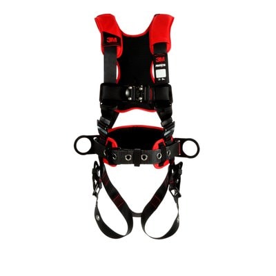 3M Protecta® comfort construction style positioning harness with an easy-link web adapter, a fixed D-ring to minimize workday readjustment and breathable Back/Hip Padding. Plus, a durable and sturdy belt, tongue-buckle leg connection, quick-connect chest connection and back and side d-rings. Designed for added comfort, these harnesses are rated for 420 lbs (190 kg) total working weight.
