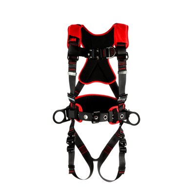 3M Protecta® Comfort Construction-Style Positioning/Climbing Harness with a fixed D-ring to minimize workday readjustment and breathable Back/Hip Padding. Plus, a durable and sturdy belt, Quick-Connect Leg Connection, Quick-Connect Chest Connection and Back, Front and Side D-rings. These harnesses are rated for 420 lbs (190 kg) total working weight.