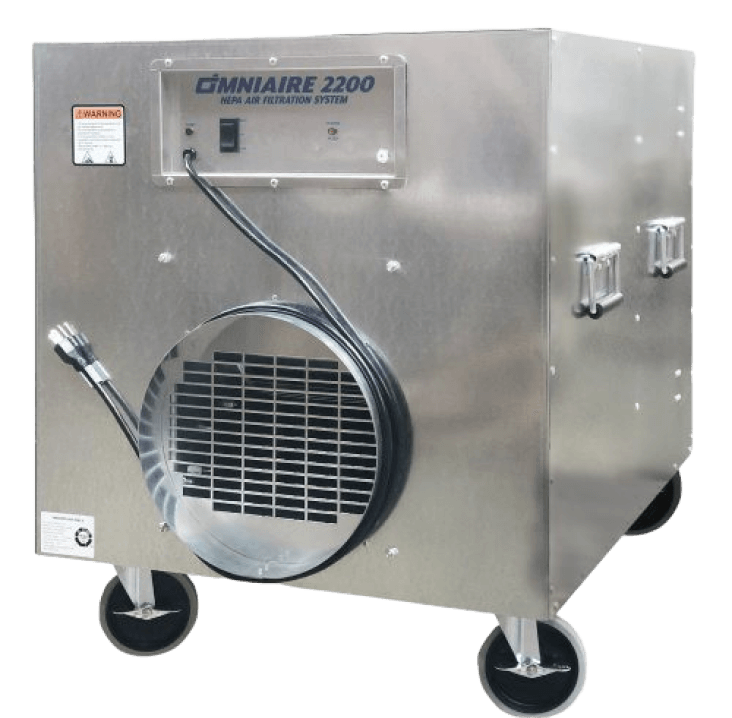 The OmniAire OA2200C Negative Air Machine is designed for construction and industrial applications. With two-speed settings, durable housing and a deep HEPA filter, it's known for its power and reliability. It offers many accessories to enhance functionality, sturdy galvanized steel housing, riveted construction and silicone sealing to ensure air doesn't bypass the HEPA filter. This machine plays an important role in removing dangerous contaminants in various environments, including abatement projects, manufacturing plant EH&S and healthcare facility construction. It handles tasks such as mold, asbestos, lead abatement, silica dust collection, flood and fire restoration and medical facility renovations. The OA2200C provides ventilation, creates negative and positive pressure conditions in industrial settings and efficiently removes construction dust using the optional Bag Filter module. Accessories include activated carbon filters and an intake manifold for flexible hose connections.