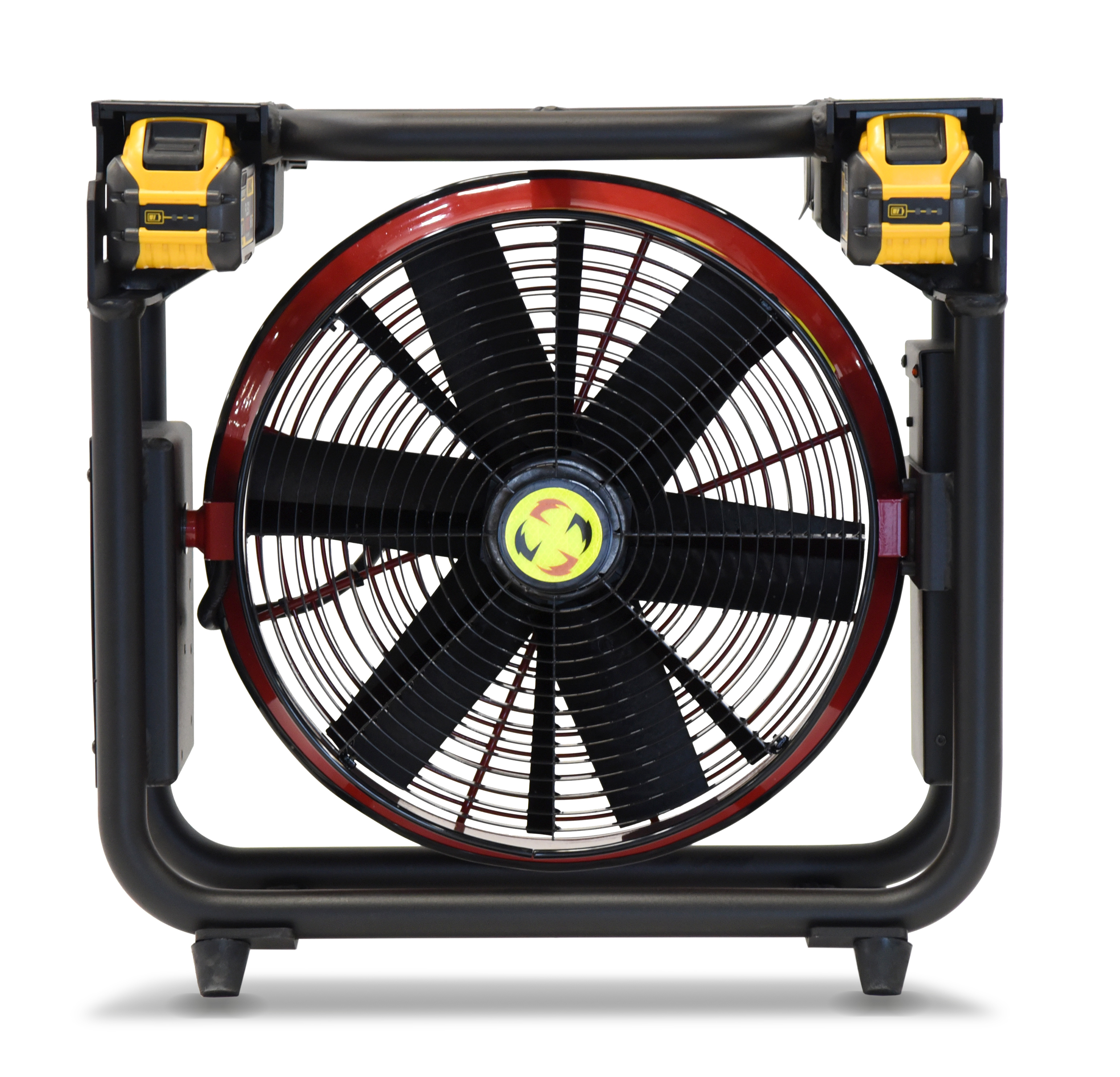 Compact. Lightweight. And reliable. Introducing the all-new Super Vac 16 in variable-speed battery fan. This PPV is equipped with dual DeWalt FLEXVOLT batteries, making it the most compatible PPV interface on the market with the ability to work in tandem with more than 180 FLEXVOLT tools. This nimble fan weighs only 34 lb and is 22-1/2 in H x 23-1/4 in W x 11-3/4 in D, turning this fan into the industry's lightweight champ.
