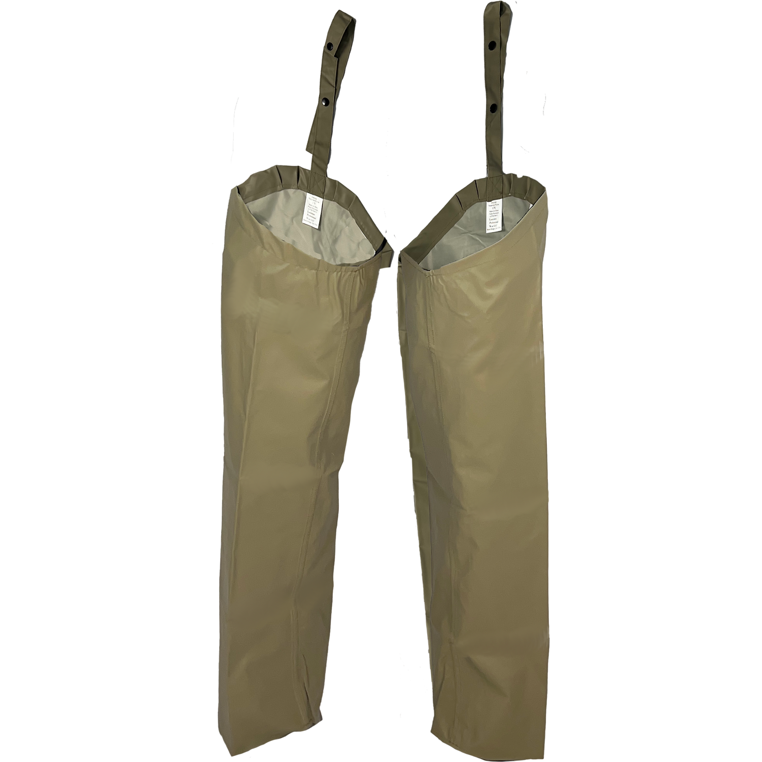Industrial protective Neoprene outerwear leggings made of a Neoprene coated 210 denier woven nylon material. Features include snap adjustment. The material meets ASTM D6413 (Limited Flame Resistance); <6 inch charlength, <2 second afterlame, no melting and dripping. The leggings offer the wearer outstanding abrasion resistance and is ideal for industrial or facility maintenance, public sewer/water works, agriculture and construction crews. Great for agricultural use.