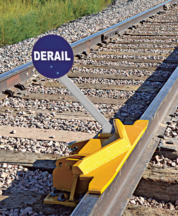When you positively have to stop a locomotive — Derails are emergency stopping devices designed to guide the wheels of a freight car or locomotive off the rails. OSHA requires that every industrial siding be equipped with a derail to deny locomotive entry before removing railcars.