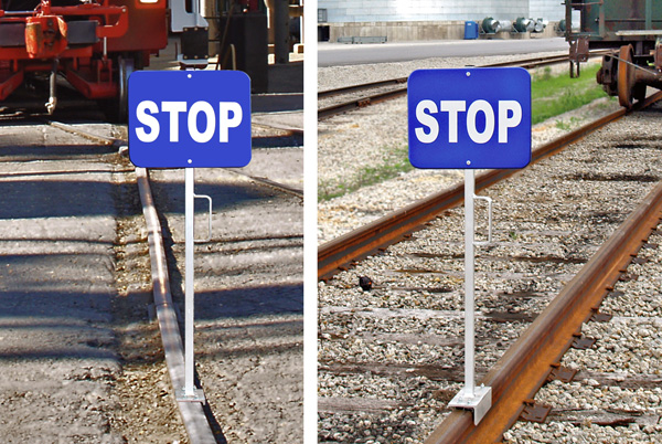 No other sign holder can attach itself to flush rail like our Magnet Base Holder. Aluminum holder utilizes a pair of powerful rare-earth magnets to grip to exposed or flush rail. No more bending or stooping to get a clamp around the rail. The worker just plunks the Magnetic Base Holder down on the rail and goes on his way. Holder stands up to a 60 mph wind force against the sign plate face.