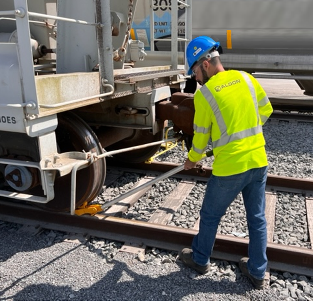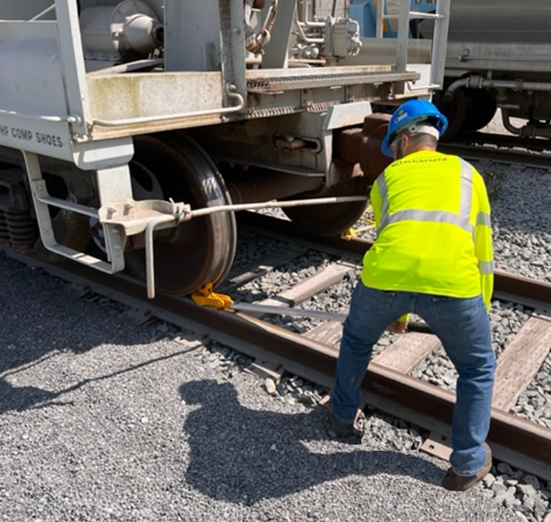 Designed for the food industry, where railcar movement is needed. The Aluminum Handle Manual Car Mover has been tested and proven to move one fully loaded railcar short distances safely. It multiplies the workers’ downward handle pressure to move the railcar wheel.