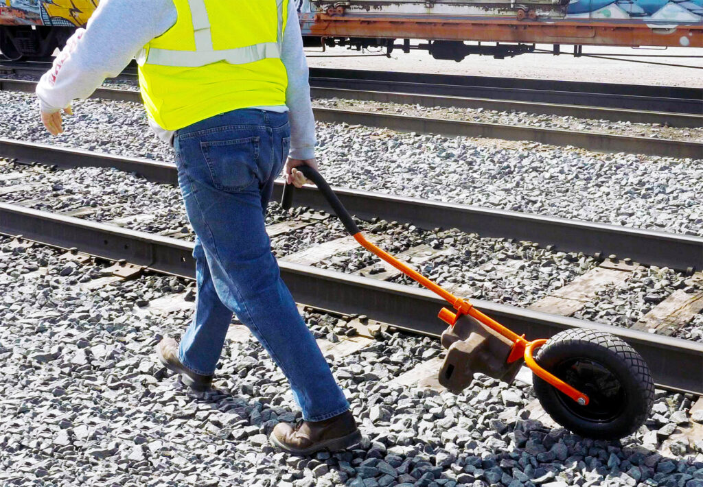 The Knuckle Carrier allows for easy transport of heavy train knuckles from the engine to the repair site without the heavy lifting.