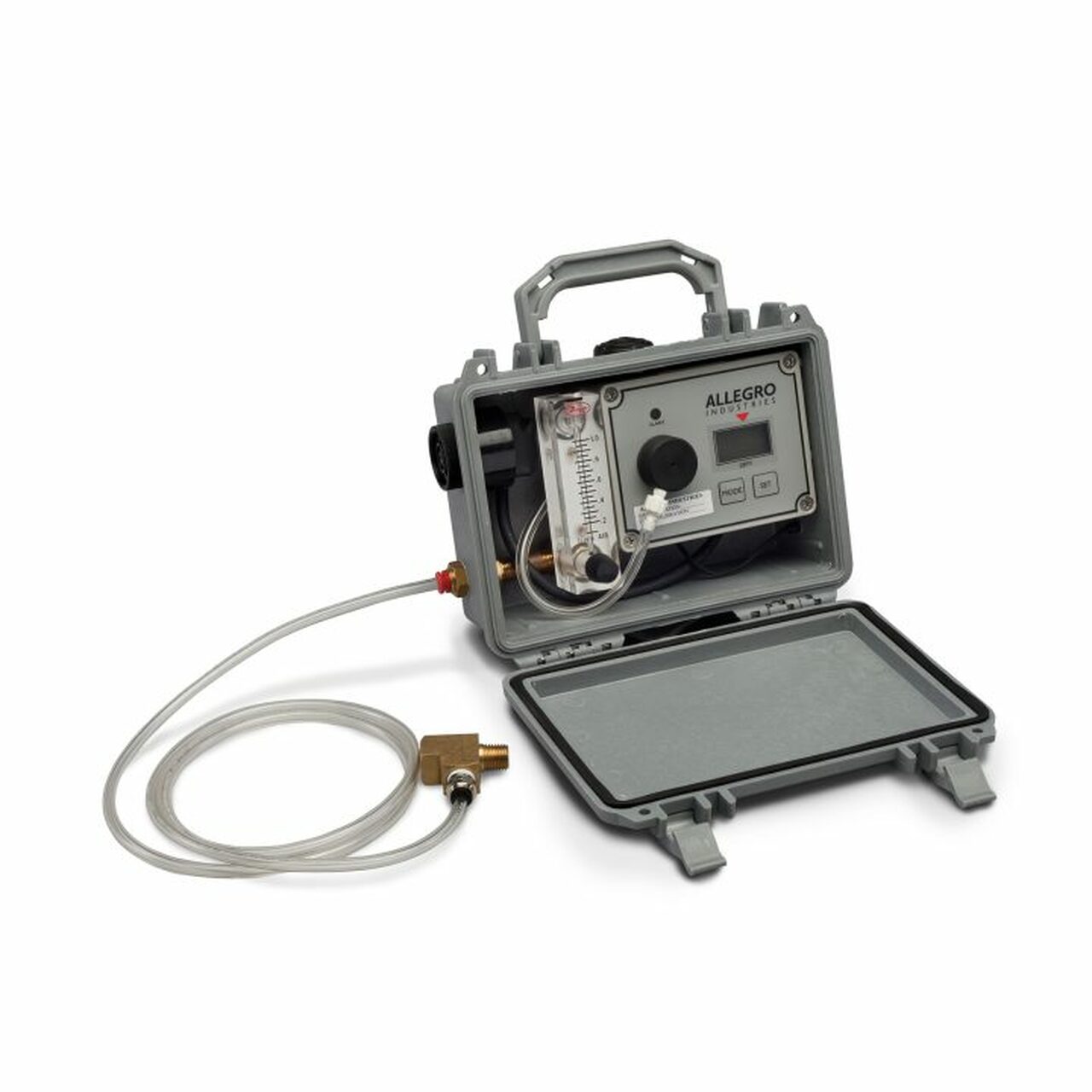 The Ambient Air Pump CO Monitor alerts workers using supplied air respirators when the level of carbon monoxide has exceeded 10 ppm (5 ppm Canada). The CO monitor can be operated in AC or DC mode and uses a single 9-volt alkaline battery. Housed in a portable, rugged Pelican case with handle and latches for protection and security. Comes with a threaded Tee. Connects inline to outlet of any Ambient Air Pump to monitor and warn of any dangerous levels of carbon monoxide entering into the air line supplying breathing air to the user. This unit is powered by a 115V AC to 9V DC power adapter. A 9V DC Alkaline battery acts as an automatic back-up if AC power is lost to the monitor.