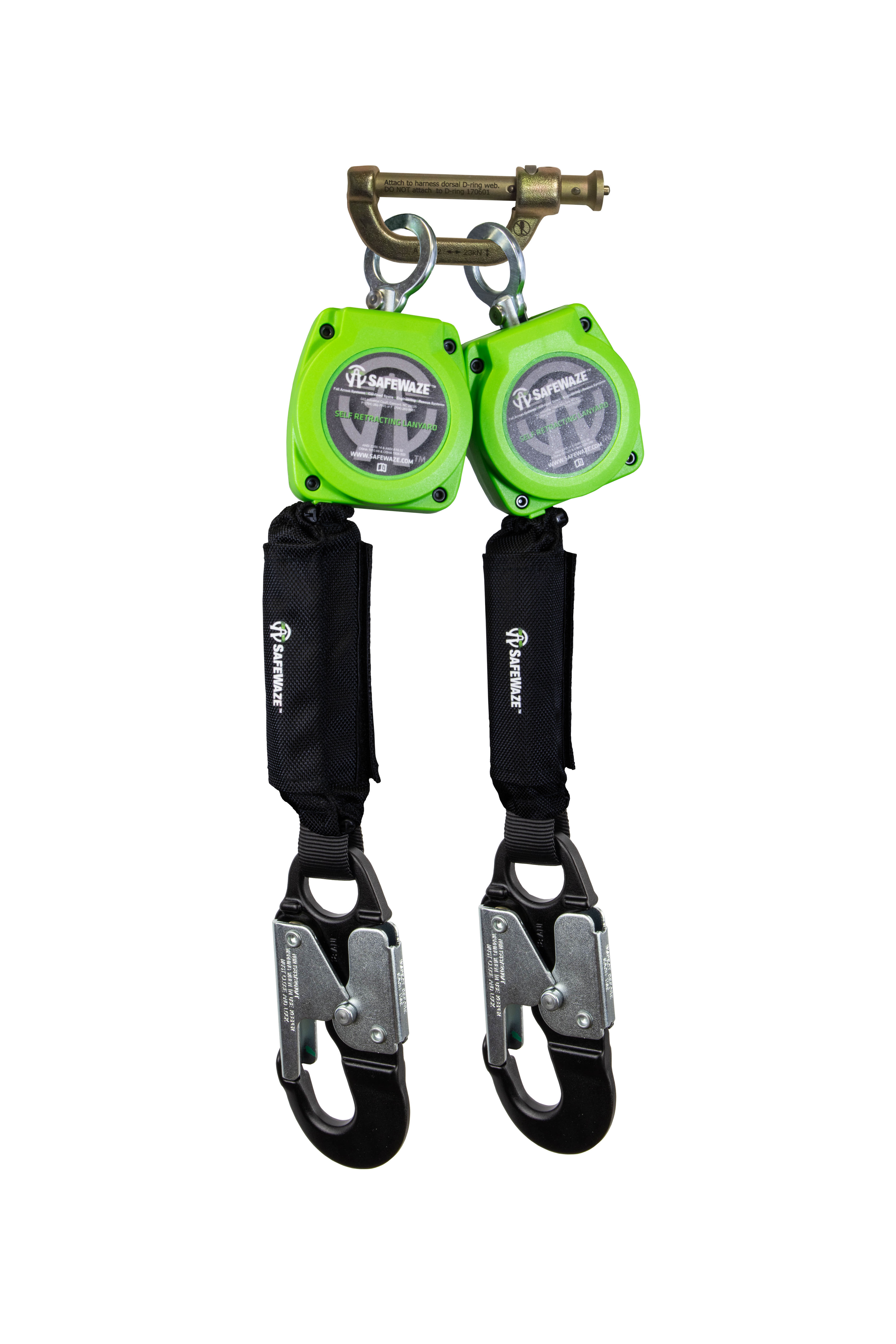 The SAFEWAZE 019-5057 Class A 6 ft dual-leg web self-retracting lifeline with aluminum snap hooks combines lightweight design with durability. These units come with our 9012 Behind-the-Web Bracket and have rotating and pivoting attachment points for improved mobility, making it the ideal personal dual-leg unit.