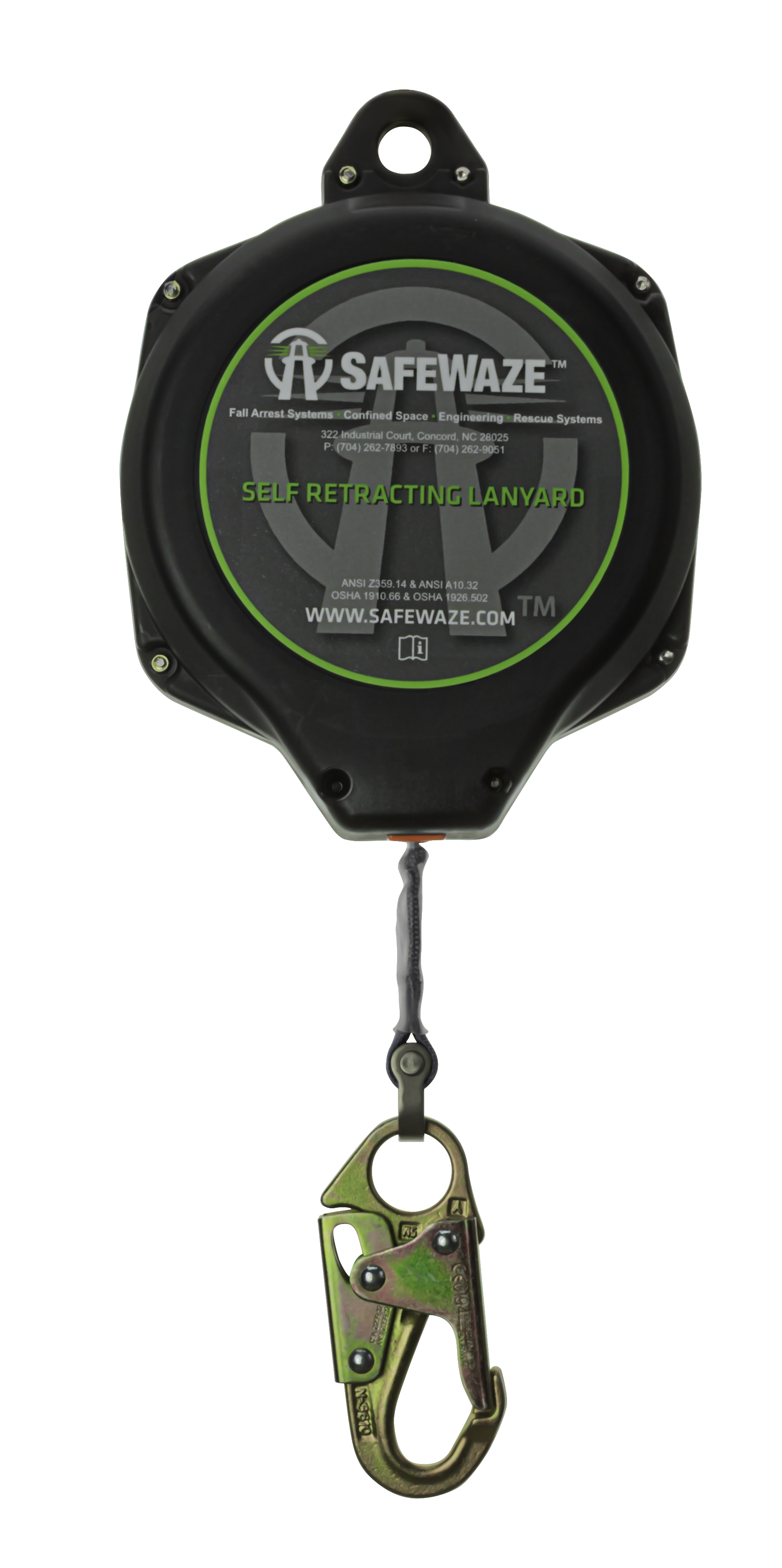The SAFEWAZE is a Class B web poly housing retractable lifeline with a mobility enhancing swivel top, fall indicator and gate rated carabiner included. The units impact resistance housing encoded in non-corrosive components ensures extended usage and performance. The housing and braking system are creatively consolidated, making this unit lightweight and portable.
