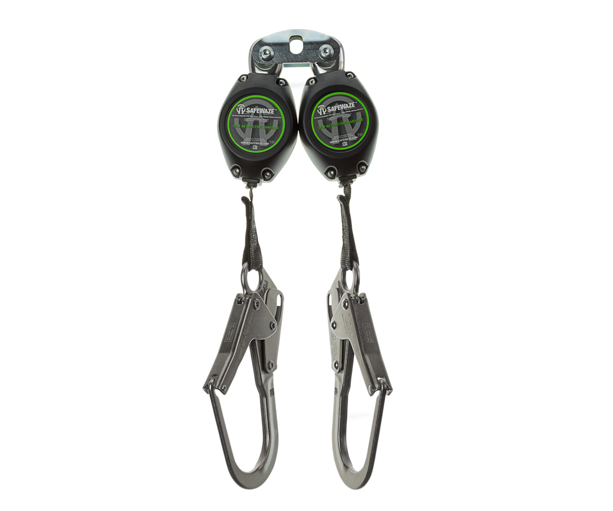 The SAFEWAZE FS-FSP14085-W-RBH 7 ft web retractable lifeline features a mobility enhancing swivel-top, rugged durable housing, and unique braking system that eases shock and minimizes free fall distance in the event of a fall. The unit also includes a fall indicator that is sewn into the webbing.