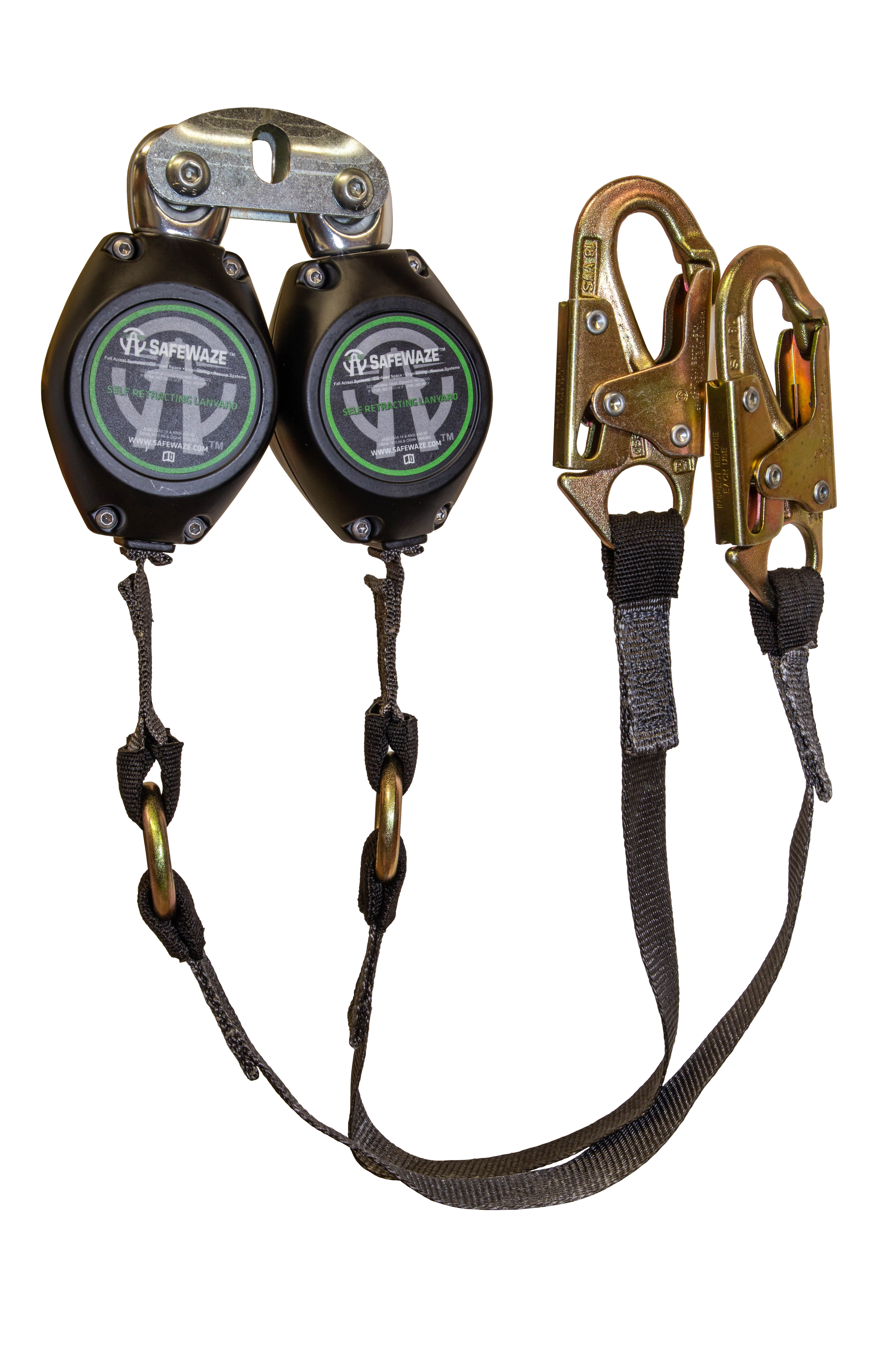 The SAFEWAZE FS-FSP1409-W-DL 9 ft web retractable lifeline features a mobility enhancing swivel-top, rugged durable housing, and unique braking system that eases shock and minimizes free fall distance in the event of a fall. The unit also includes a fall indicator that is sewn into the webbing.