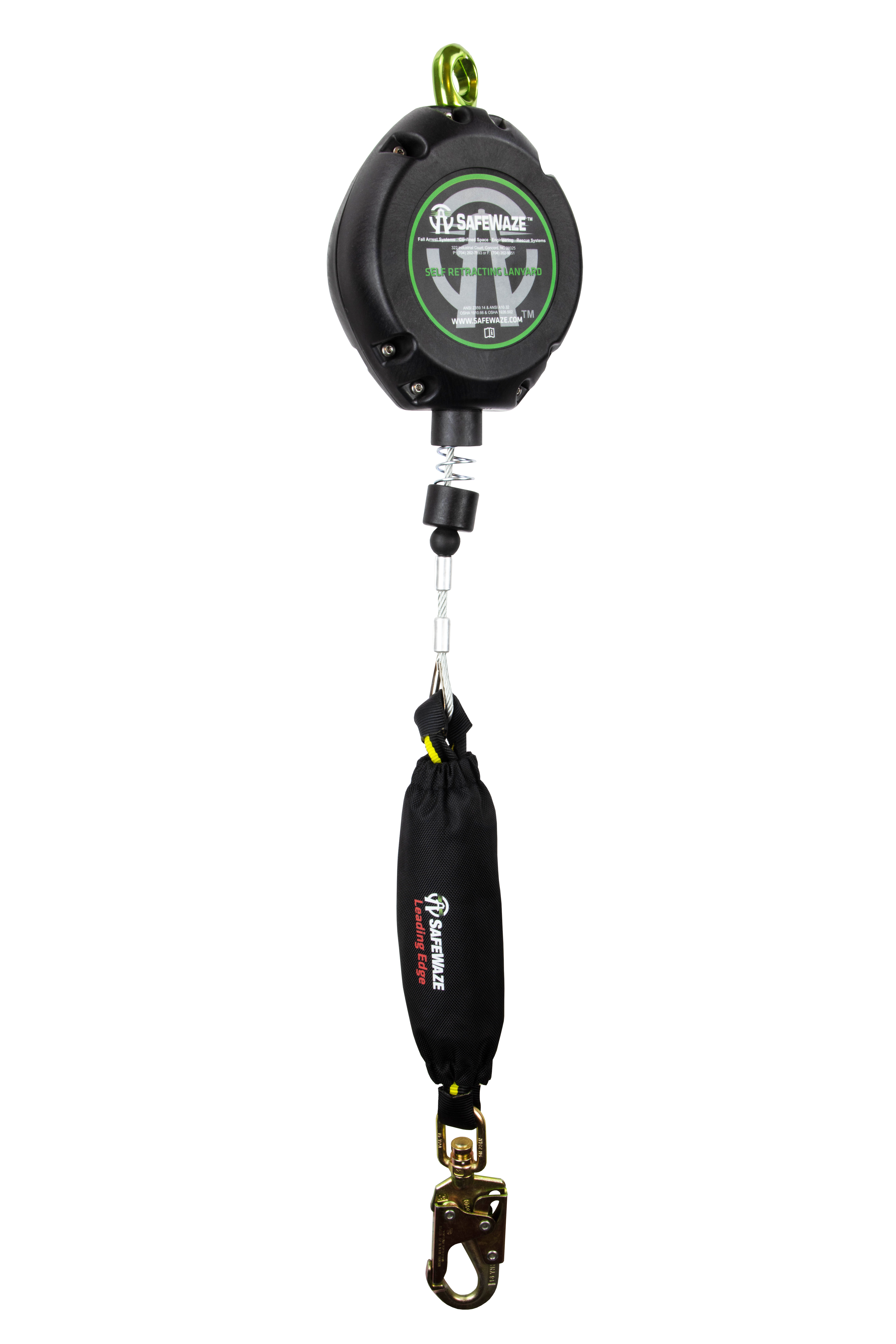 The SAFEWAZE is a Class B Self retractable lifeline with an integral shock pack making it ideal for leading-edge applications. It also has a mobility enhancing swivel top, a rugged and durable housing, and a unique braking system that eases shock in the event of a fall.