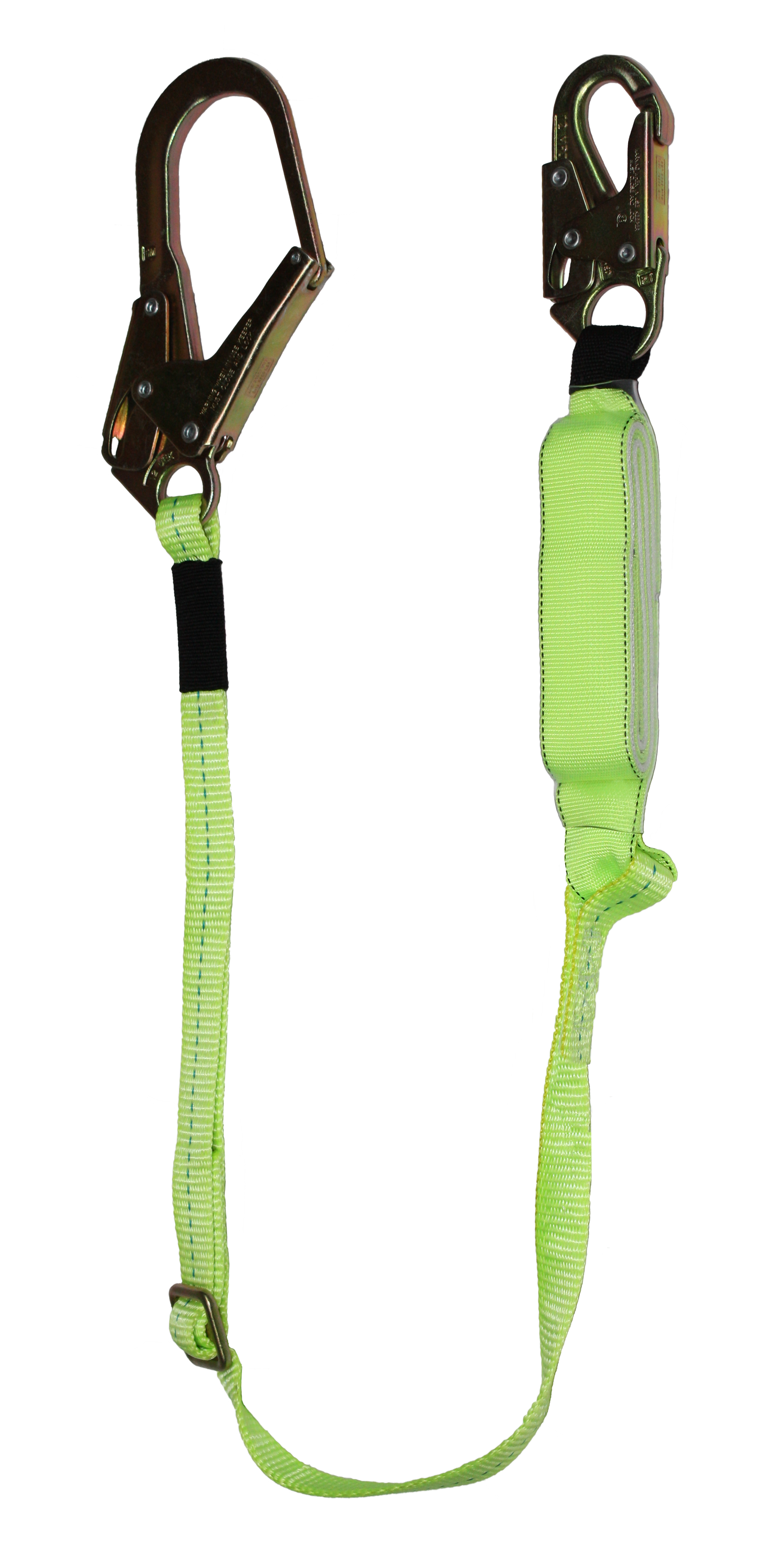 The SAFEWAZE FS565-AJ is a high profile energy absorbing lanyard that adjusts from 4 ft to 6 ft in length and has a forged snap hook on one end and 2-1/4 in rebar hook on the other, providing more tie-off options. The lanyards high vis green webbing makes it easy to see and the clear shock pack ensures easy label inspection.