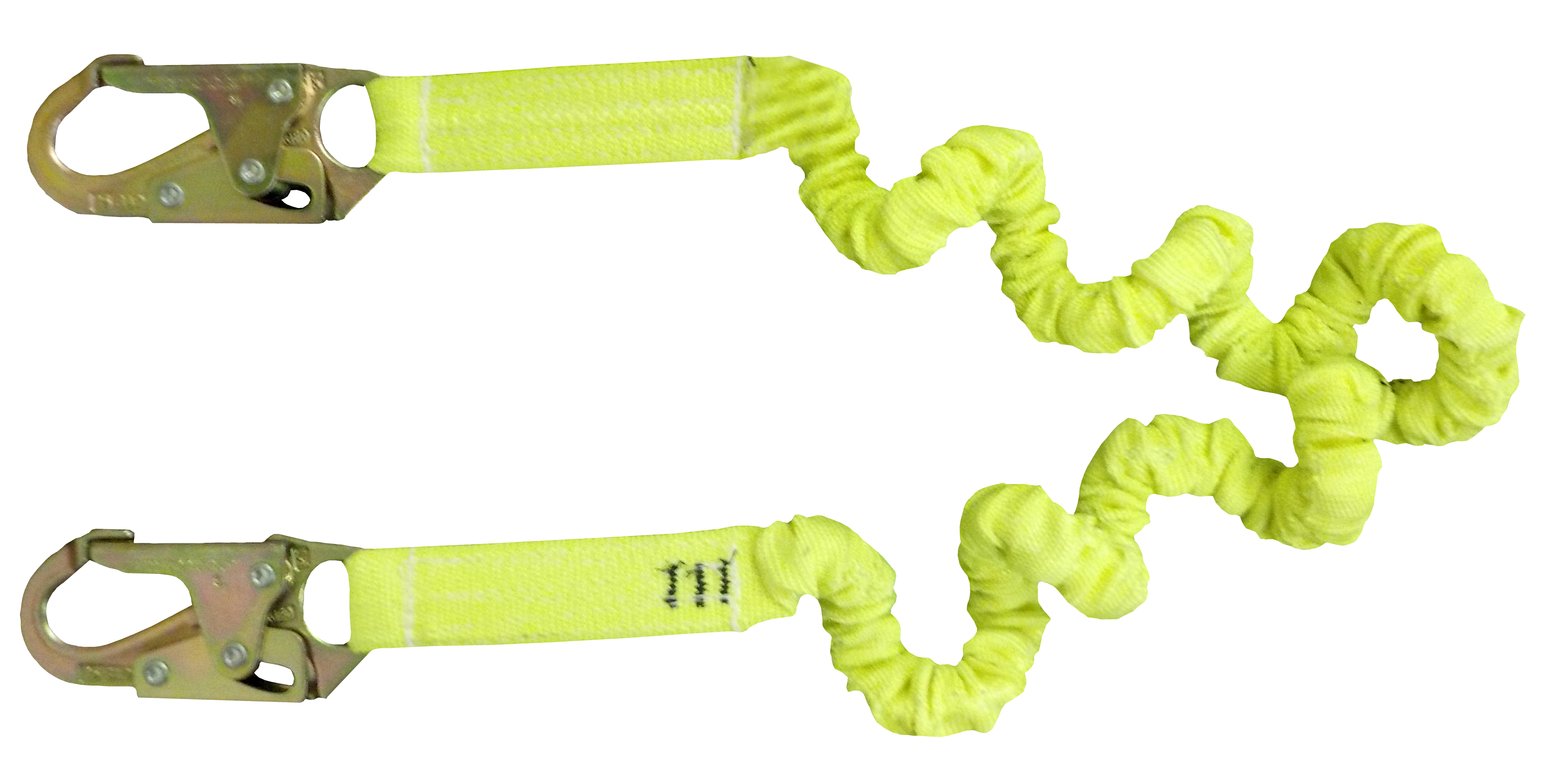 The SAFEWAZE FS590 is a low profile elastic energy absorbing lanyard that stretches 4 ft to 6 ft in length, with forged a snap hook on each end. The lanyards low profile wears less on a workers body while the internal shock tear away to lessen body impact, by eliminating an external shock pack.
