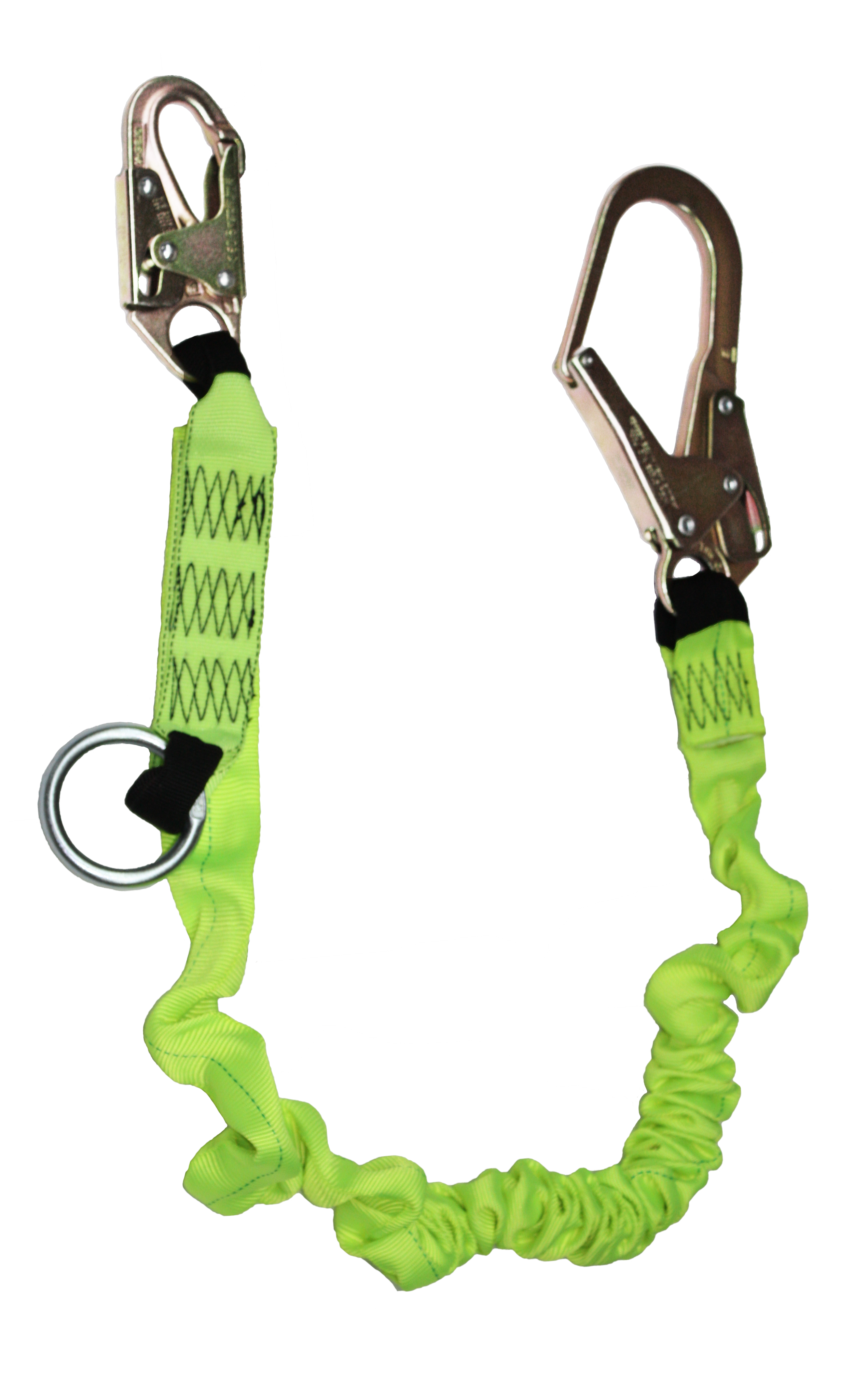 The SAFEWAZE FS66100 is a low profile elastic energy absorbing combo lanyard that stretches 4 ft to 6 ft in length and has a forged snap hook on one end and 2-1/4 in rebar hook on the other, providing more tie-off options. This lanyard is ideal when varying clearance heights require different connecting devices and features a fixed O-ring to connect to a self retracting lifeline.