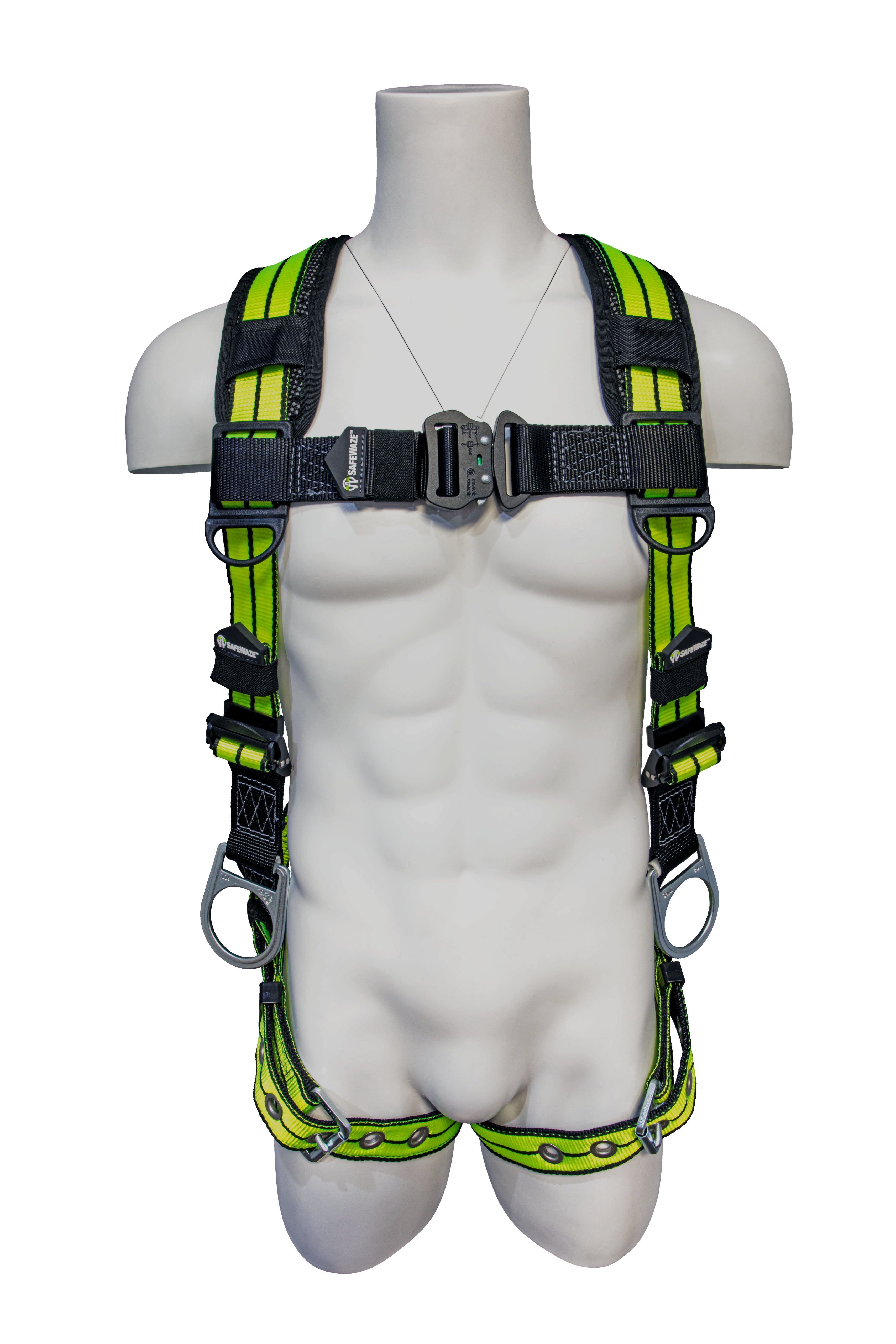 The SAFEWAZE PRO+ Flex Vest fall protection harness offers comfort and mobility utilizing Flex webbing and the adjustable buckles make harness fitting easy. The harness also includes impact absorbing shoulder pads with reflective piping and intelligent cell foam, quick fitting grommet leg straps, and a quick release chest buckle.