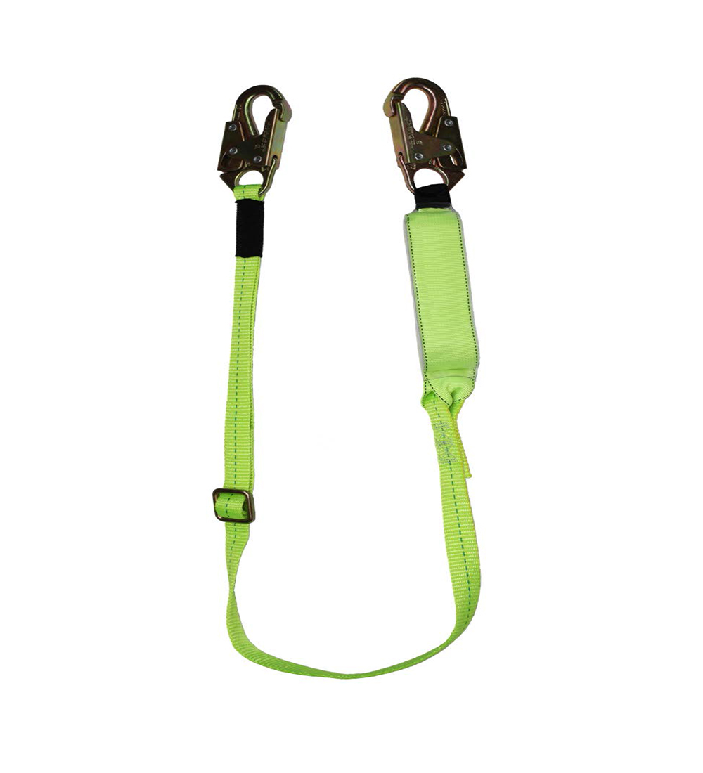 - 1 in nylon webbing, high-strength polyester stitching, shock absorber, forged steel snap hooks: 3600 lb gate rated, minimum breaking strength > 5000 lb