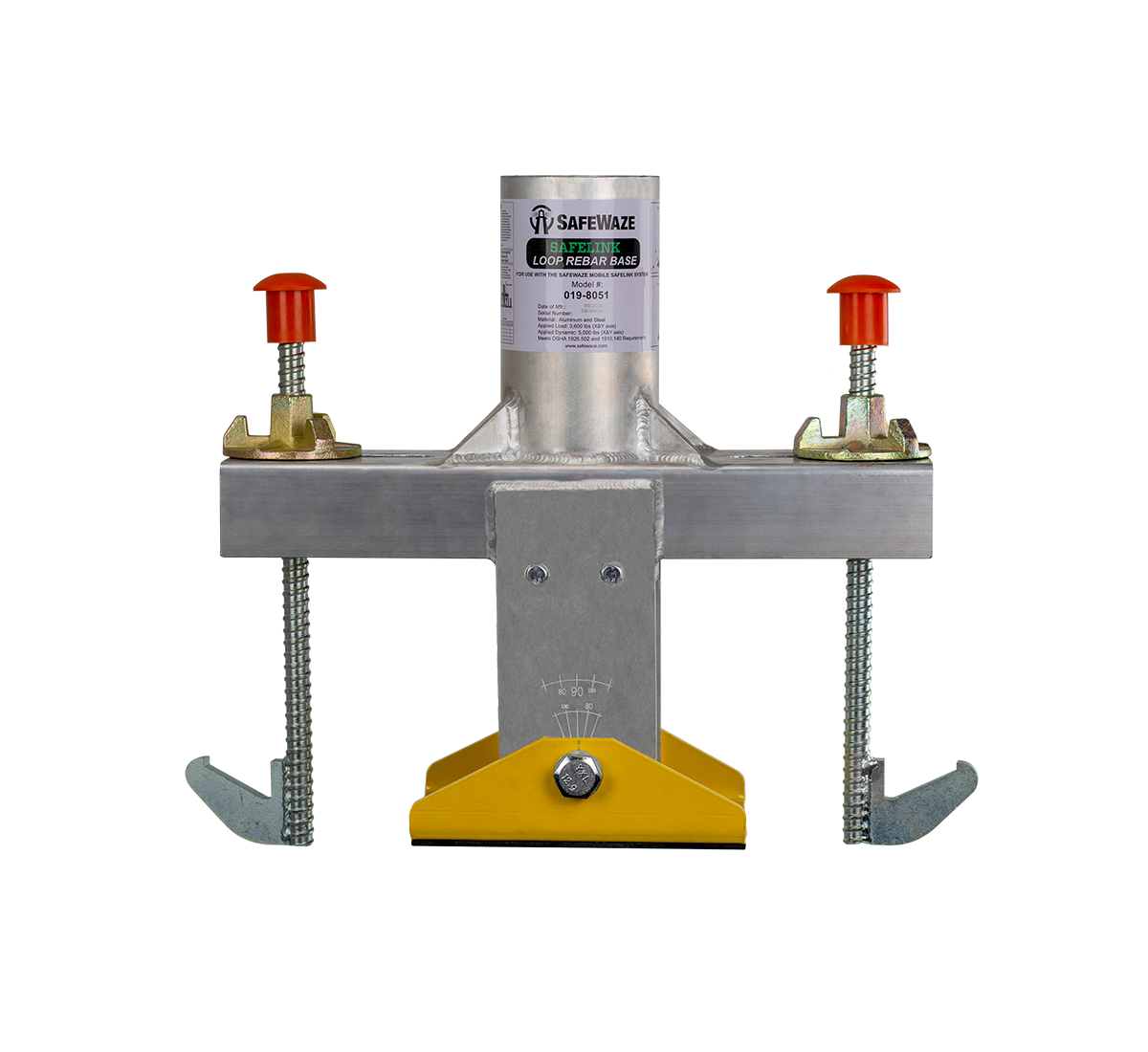 The SAFELINK loop rebar base combined with the FS-EX5501-5 Anchor Post creates a convenient and versatile Horizontal Lifeline System mounting solution requiring no special tools to install. Unit can be mounted to most sizes of pre-stressed concrete beams with rebar loops.