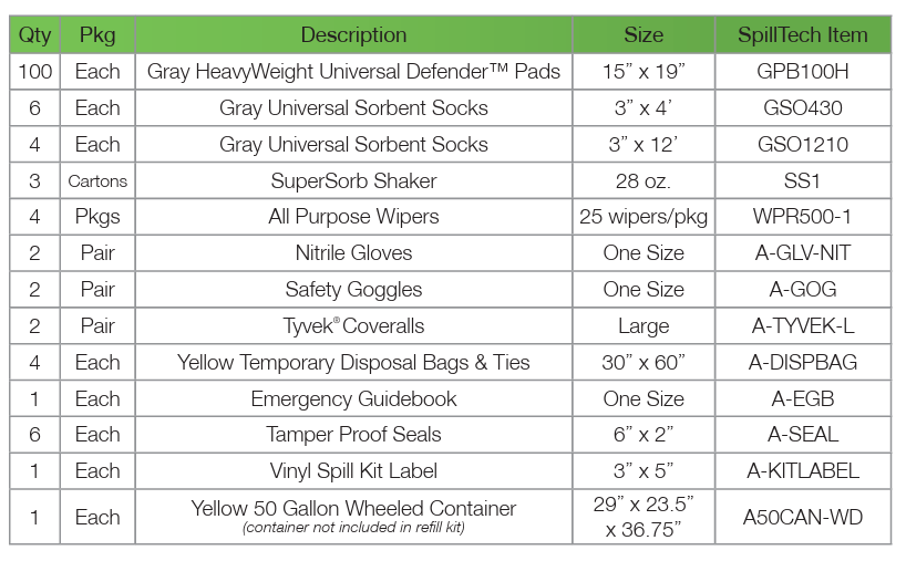 - Tamperproof seal helps prevent pilfering of spill response supplies