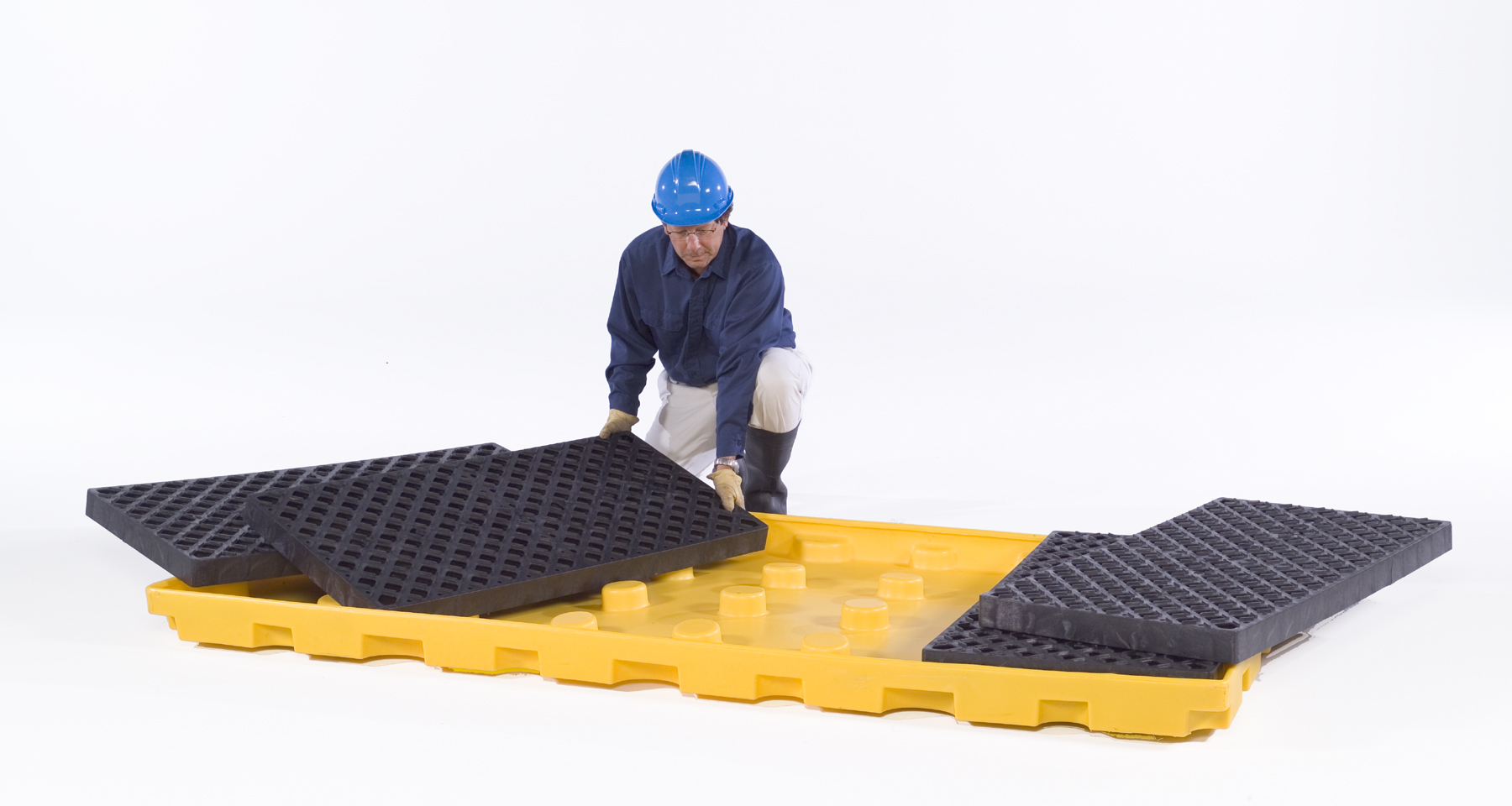 • One-piece, molded sump with elevated 2 x 4 ft black grates