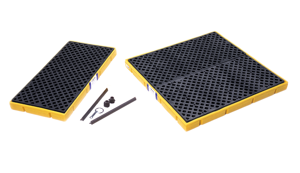 In many instances, our standard spill decks and spill deck bladder systems can handle the weight of the drums or containers loaded on top of them. For example, a 55-gal drum of hydraulic oil weighs approximately 425 lb and the 1-drum spill deck is rated for 1500 lb. But for those occasions where extra weight capacity is needed, the Ultra-Spill Deck Plus Models are an excellent option. These units are rated at 10000 lb. per square foot! They still function like other spill decks by connecting via bulkhead fittings and sharing spill containment capacities but have the added features of a slightly lower profile (4.25 in) and the significantly higher weight capacity.