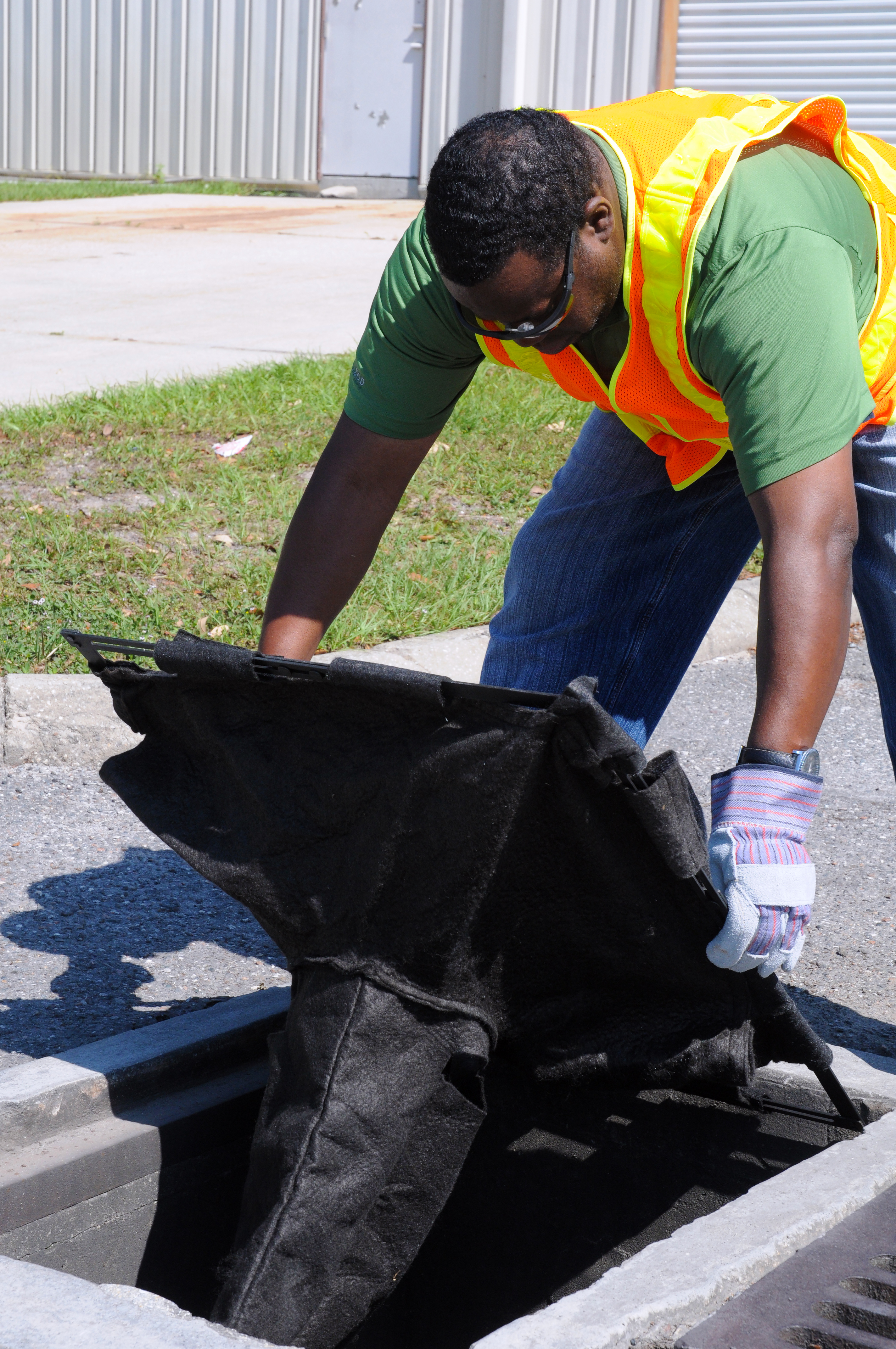 There are many models of Ultra-Drain Guard. And most of them are held in place by the weight of the storm drain grating. The one exception to this is the Adjustable Model. Instead, this unit relies on a steel framework to keep it from falling into the basin. The steel framework adjusts to fit different drain sizes. What is the advantage of this type of installation? For one thing, the Drain Guard remains in place even when the grating is lifted. With other models, crews need the foresight to secure the Drain Guard before lifting the grate. The other advantage is aesthetics. There is no excess material to trim or that may stick out above the grating. It's a clean and simple installation.