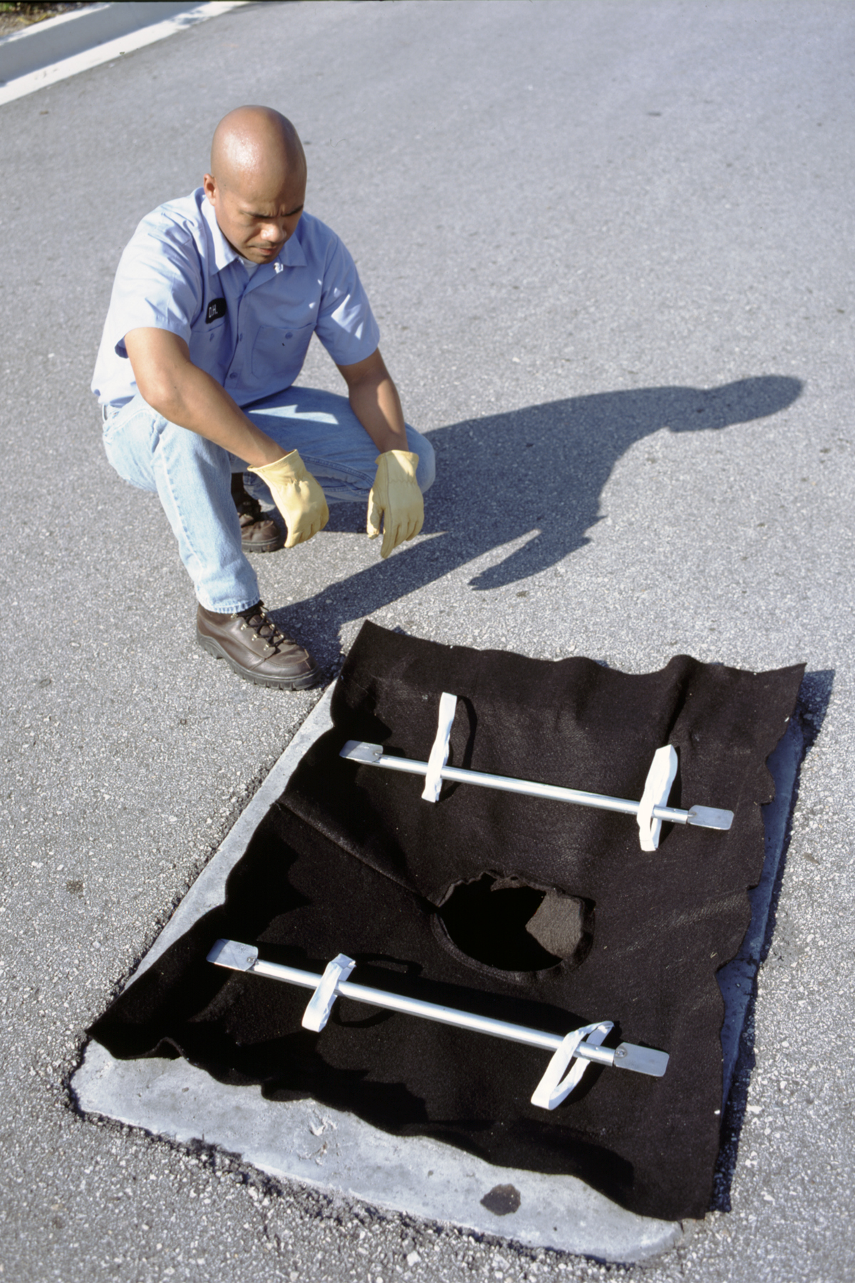 Most Ultra-Drain Guards are held in place by pinching the material of the unit between the storm drain's grate and the catch basin. The advantage of this is that it's simple. Lift the grate. Place the Drain Guard. Lower the grate. Done. The one consideration with this type of setup is what happens to the installed Drain Guard when the grate is lifted? Well, if you don't plan ahead and use the built-in lifting straps, it's going straight to the bottom of the catch basin. Ultra-Drain Guard Retainers eliminate that issue. These steel bars span the opening of the catch basin and secure the Drain Guard whether the grating is in place or not.