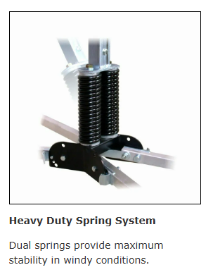 • Spring system provides added stability in windy conditions