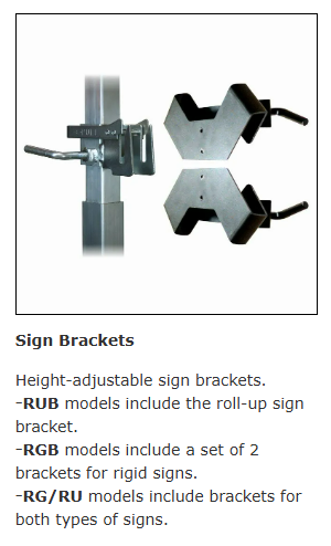 • RG/RU models include brackets for both types of signs