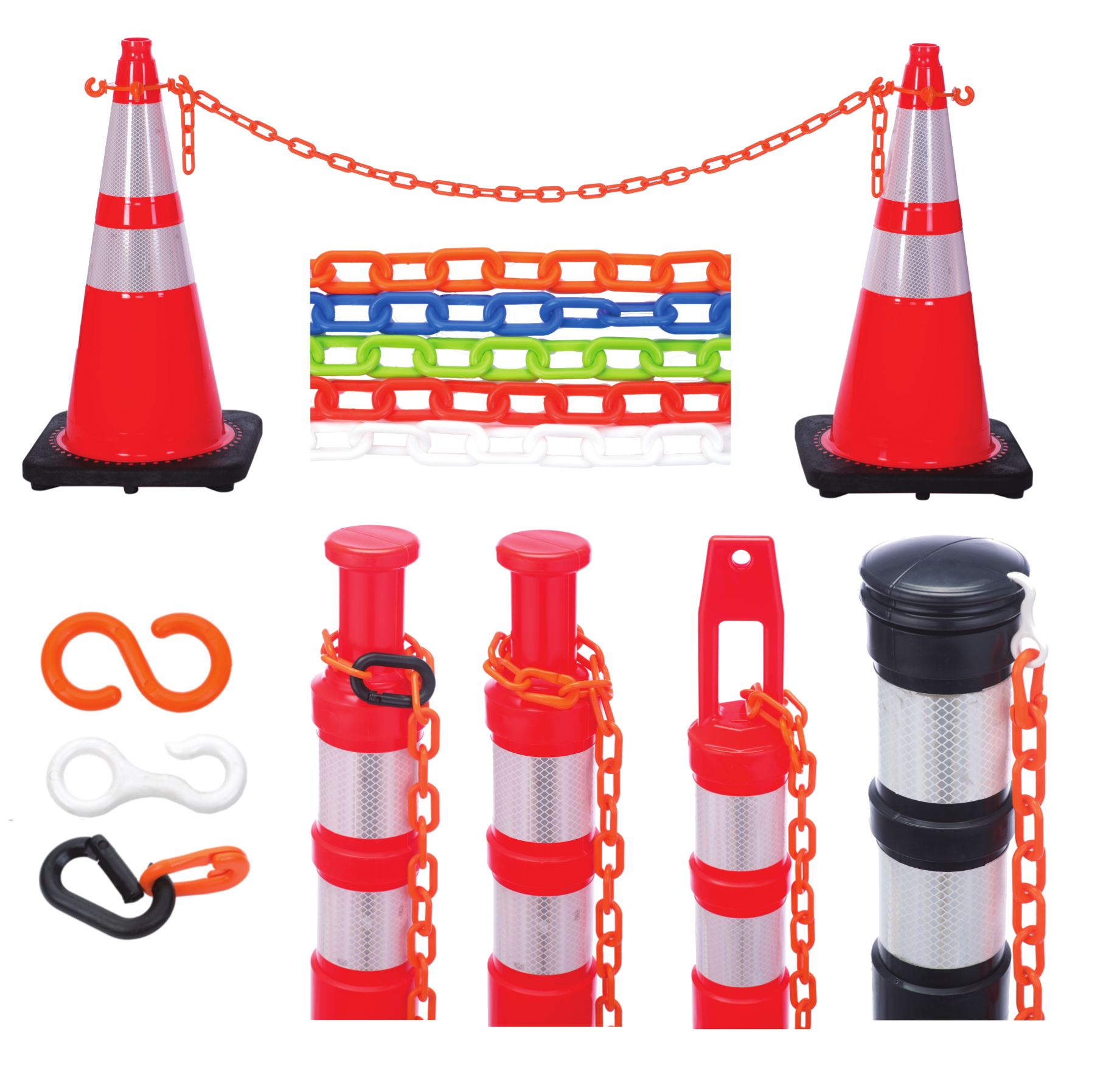 A strong, durable option that will connect to all to JBC cones and delineators to form visual barriers that are bright and colorful.