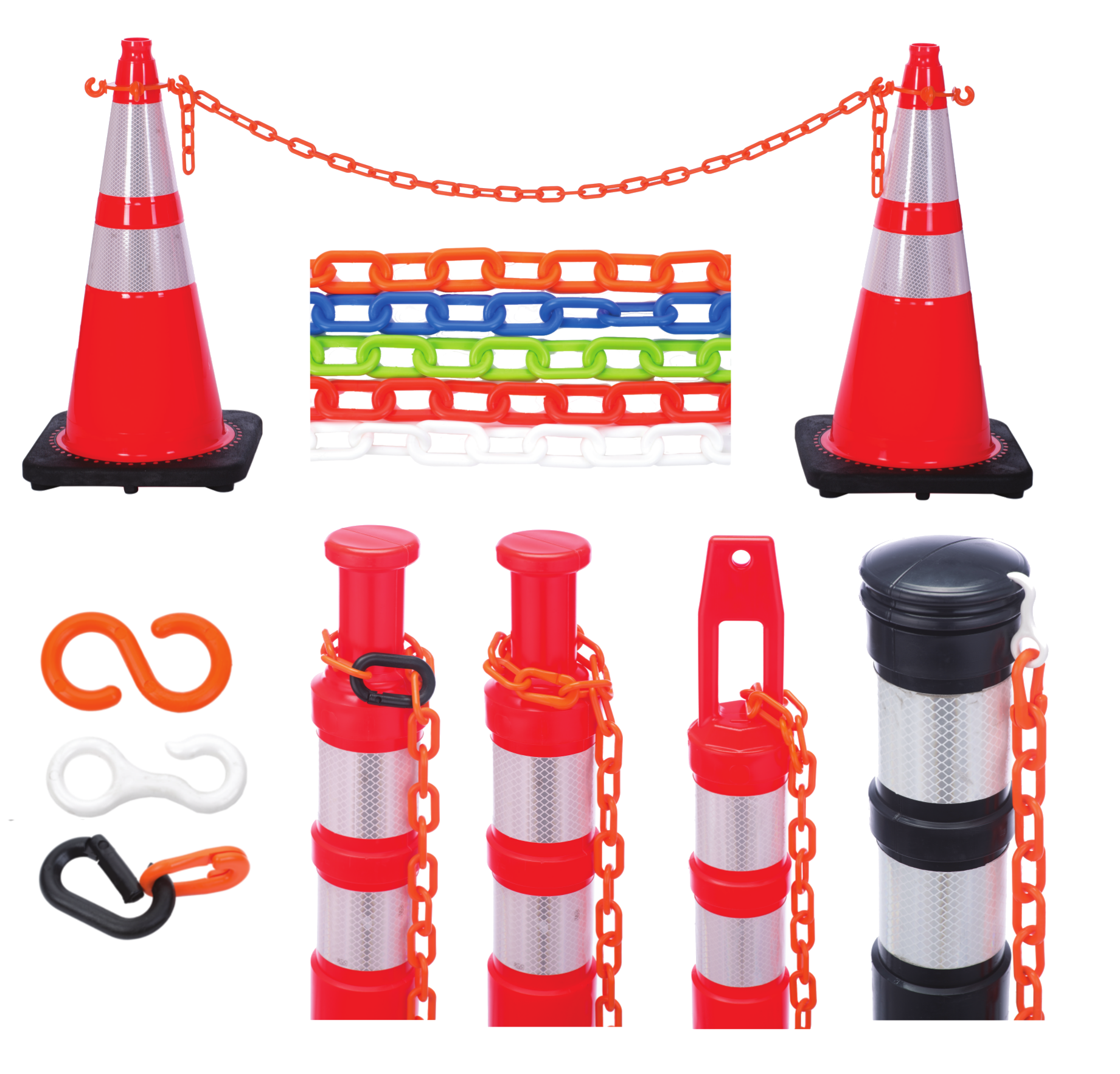 A strong, durable option that will connect to all to JBC cones and delineators to form visual barriers that are bright and colorful.