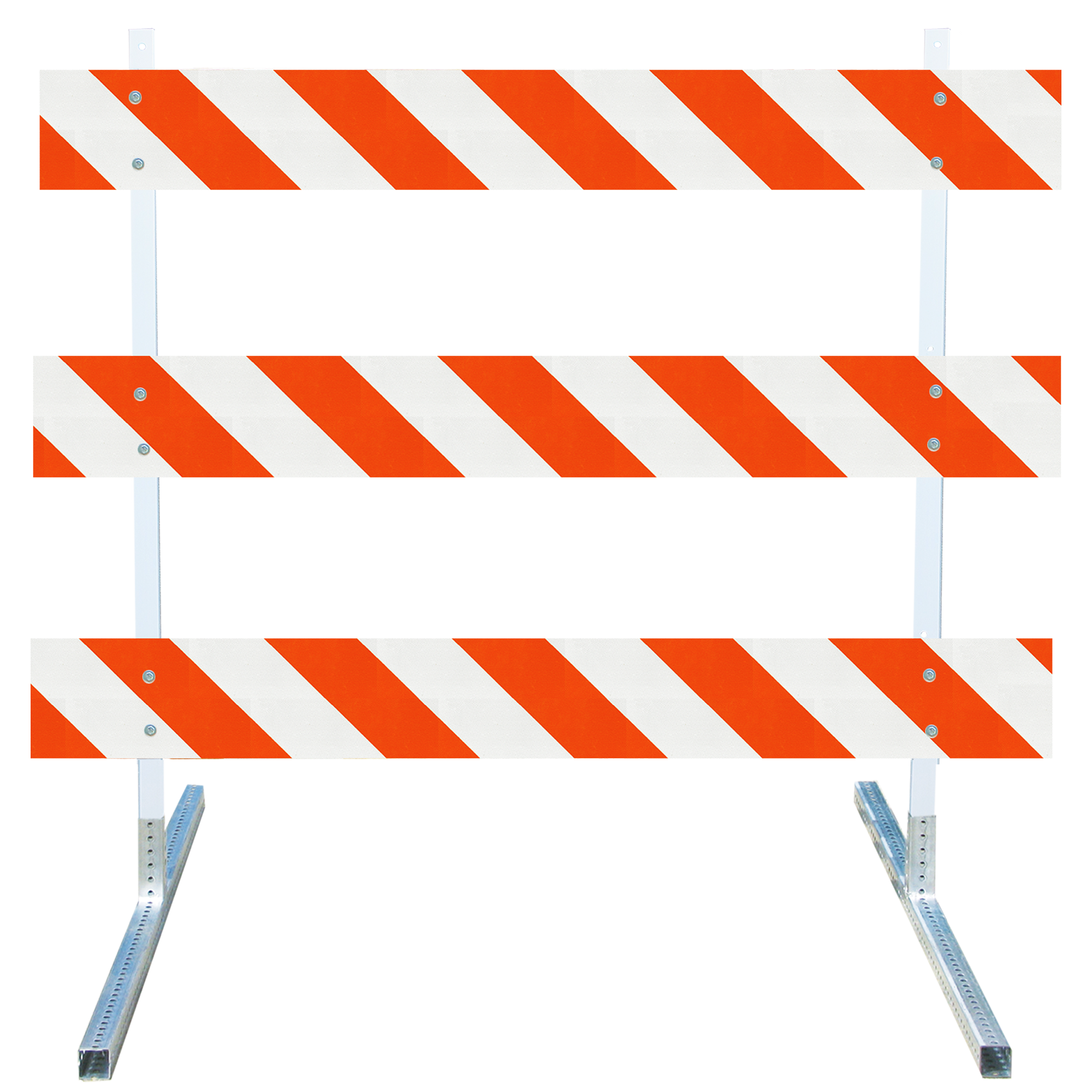 Use power post with galvanized steel square tube feet (14 ga) or angle iron feet (10 ga). Order sheeting on one or both sides of the boards, or none. 3M retroreflective striped sheeting available in engineer grade, high intensity prismatic grade, and diamond grade. Chevron sheeting is also available.